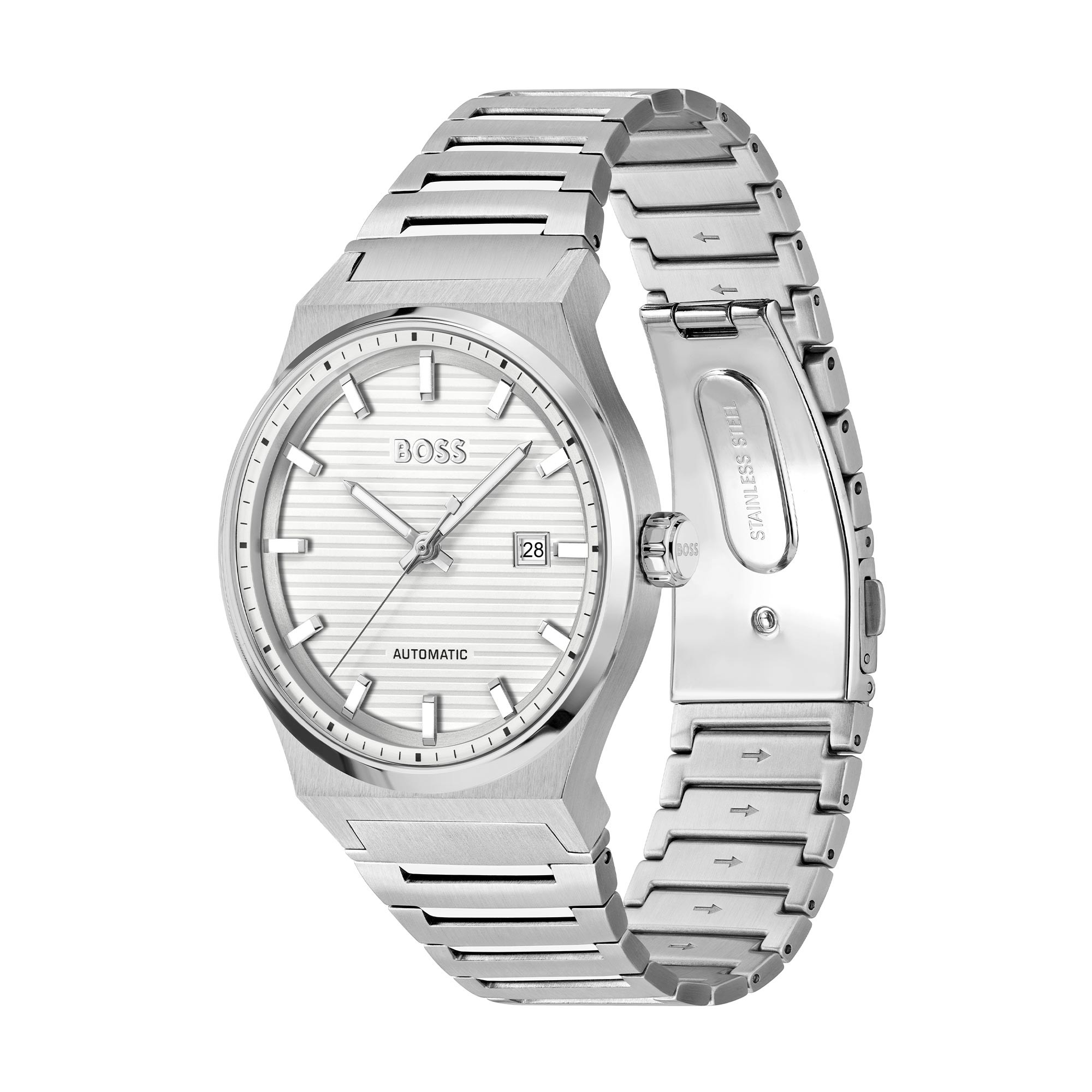 Discover timeless elegance and unparalleled craftsmanship with the BOSS Candor Automatic 41mm Stainless Steel Men's Watch 1514186. This exquisite timepiece from the renowned BOSS Candor collection is designed to complement the modern man's lifestyle with its sophisticated features and robust construction.