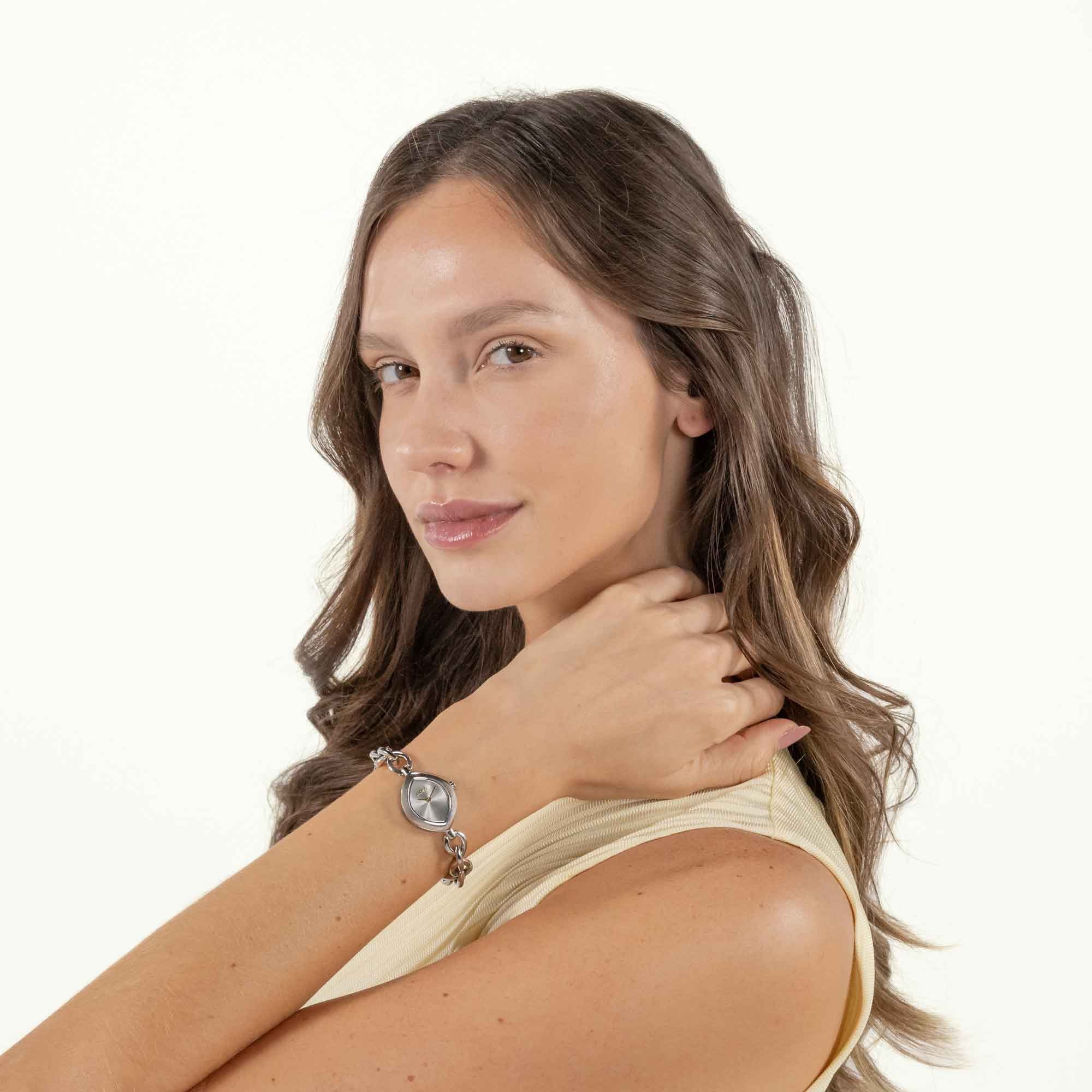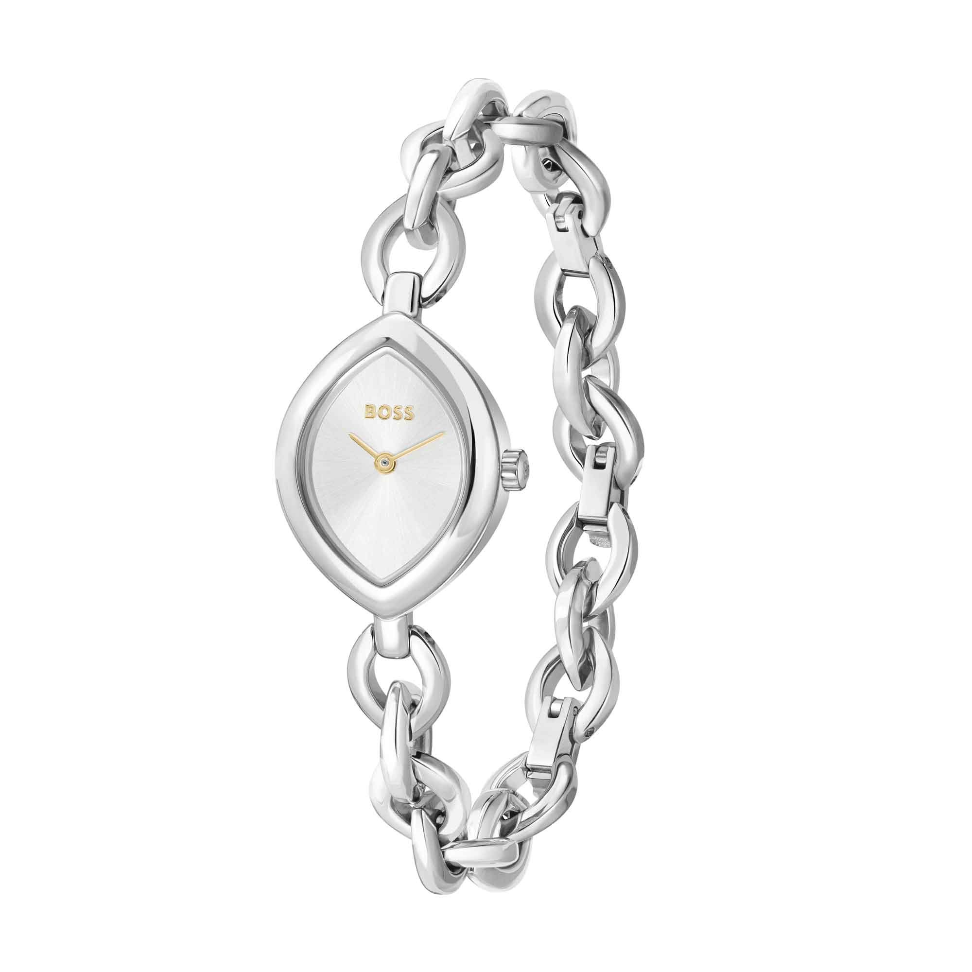 Designed for her, the BOSS Fiora 29mm complements both office attire and weekend style. Its measured proportions and low profile slide under cuffs without fuss. The neutral silver tone pairs well with jewellery and accessories.