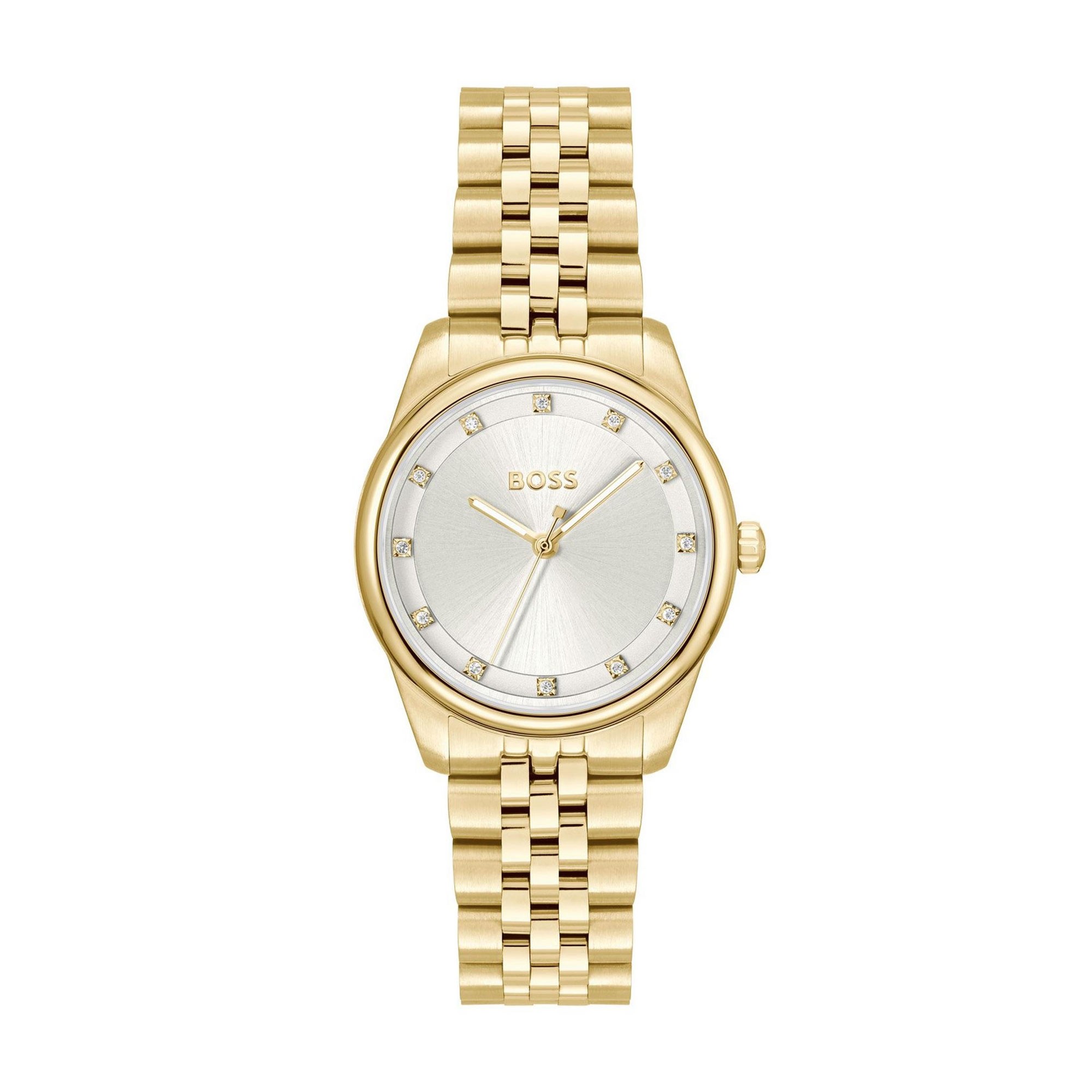 The BOSS Graceful watch is designed with a metal bracelet strap that is comfortable and secure, featuring a reliable folding clasp for easy wear. Housed in exclusive BOSS presentation packaging, this watch makes an ideal gift for her, perfect for any occasion.