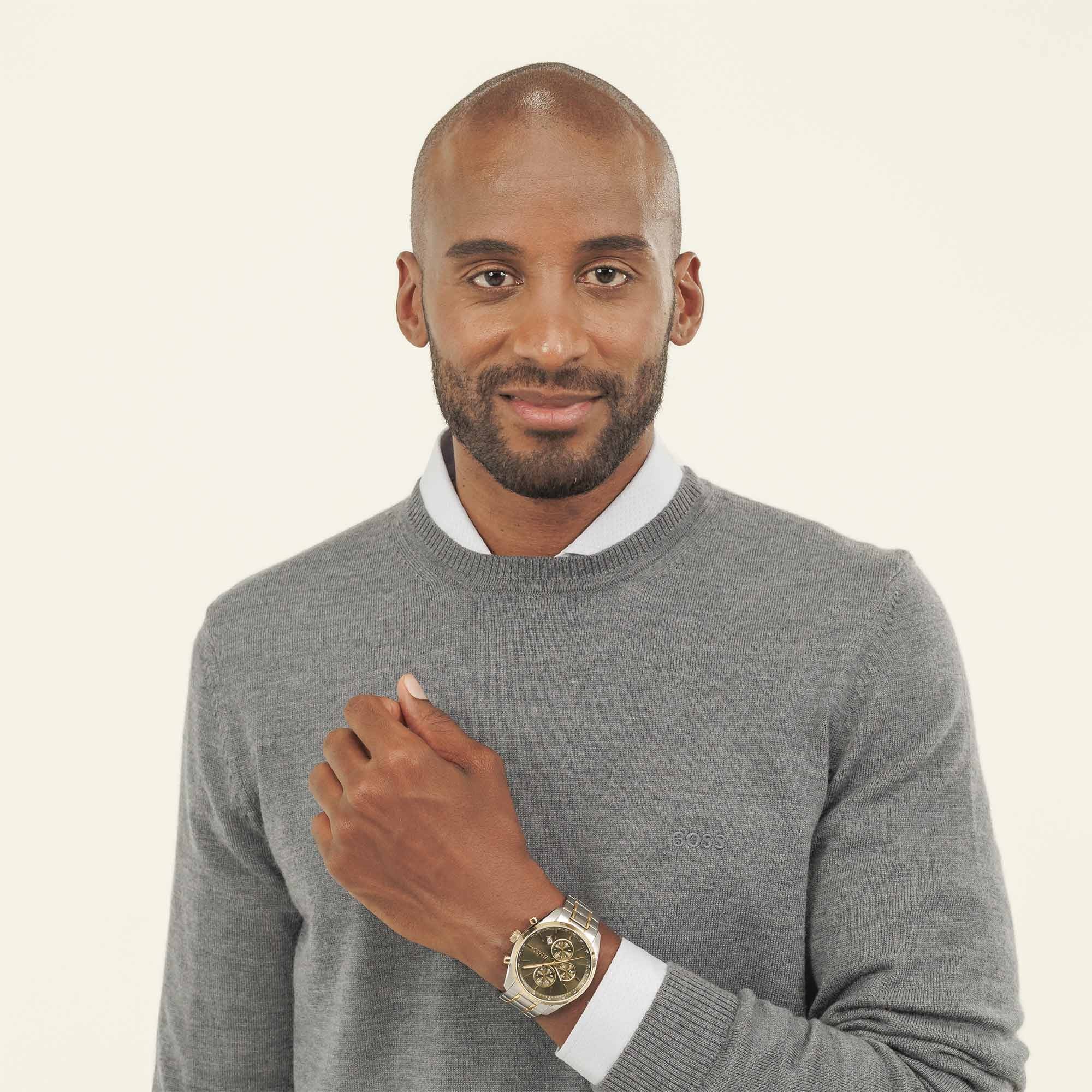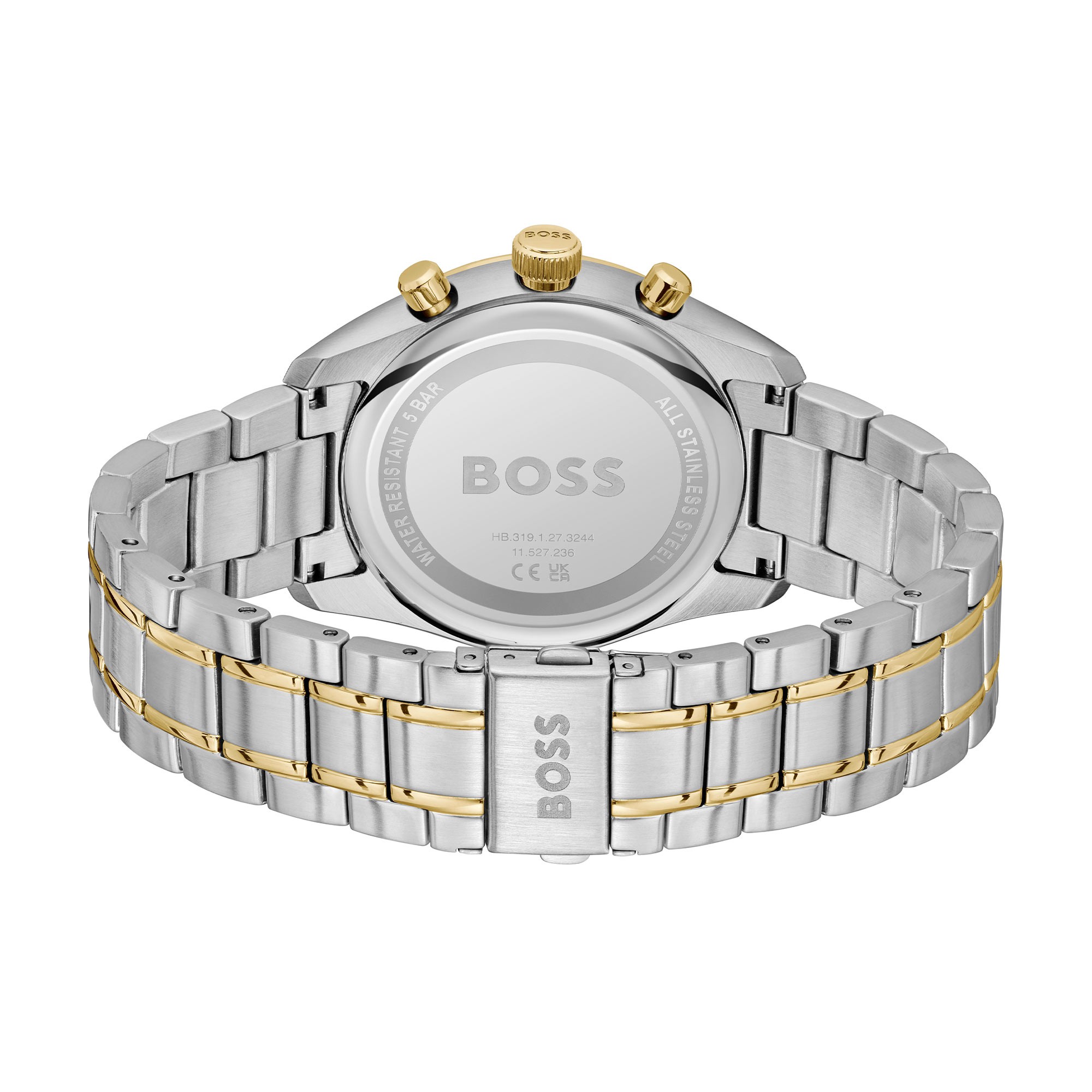 Crafted with a robust stainless steel and gold-tone case, with a mineral crystal glass that adds durability and water-resistant up to 50 metres. The watch is completed with a bi-metal bracelet that provides comfort and a secure fit, thanks to its deployment clasp. Packaged in BOSS presentation packaging, the Grand Prix collection is perfect for gifting or personal use. With its combination of functionality and refined aesthetics, the BOSS Grand Prix 1514227 is the ideal accessory for the discerning man, suitable for both formal occasions and casual outings.