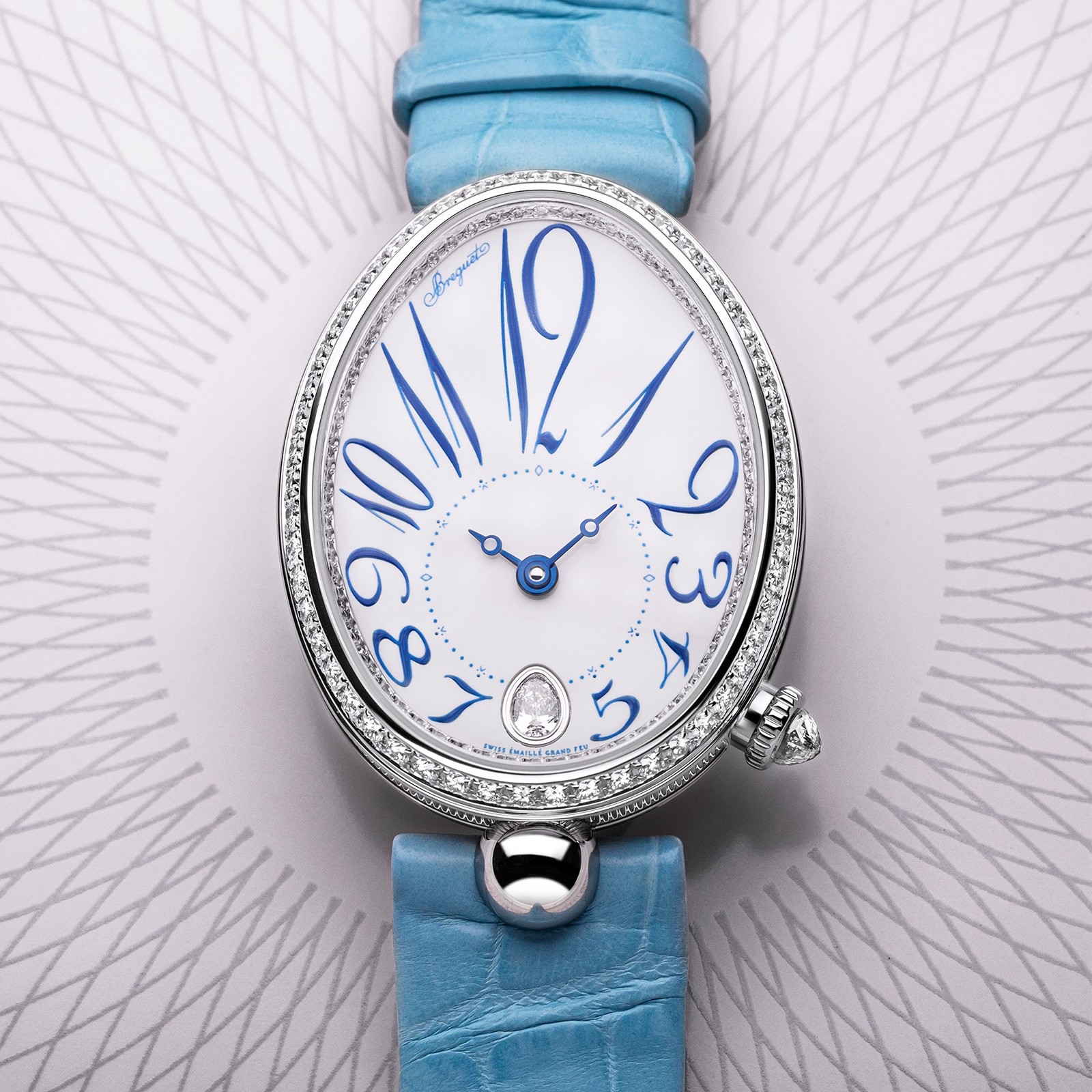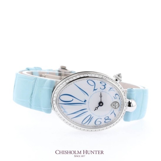 Ladies Breguet Reine de Naples White Dial Blue Leather Strap