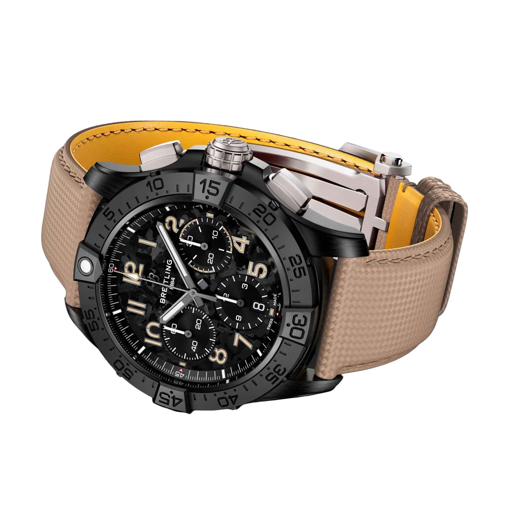 All stainless-steel versions come with a choice of military leather strap with a folding-pin buckle or three-row stainless-steel bracelet with micro-adjustable folding clasp. Ceramic models are paired to a military leather strap with a titanium folding-pin buckle.