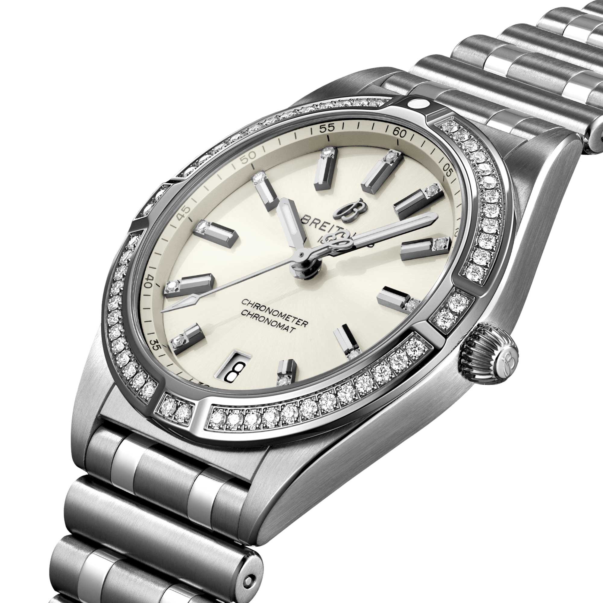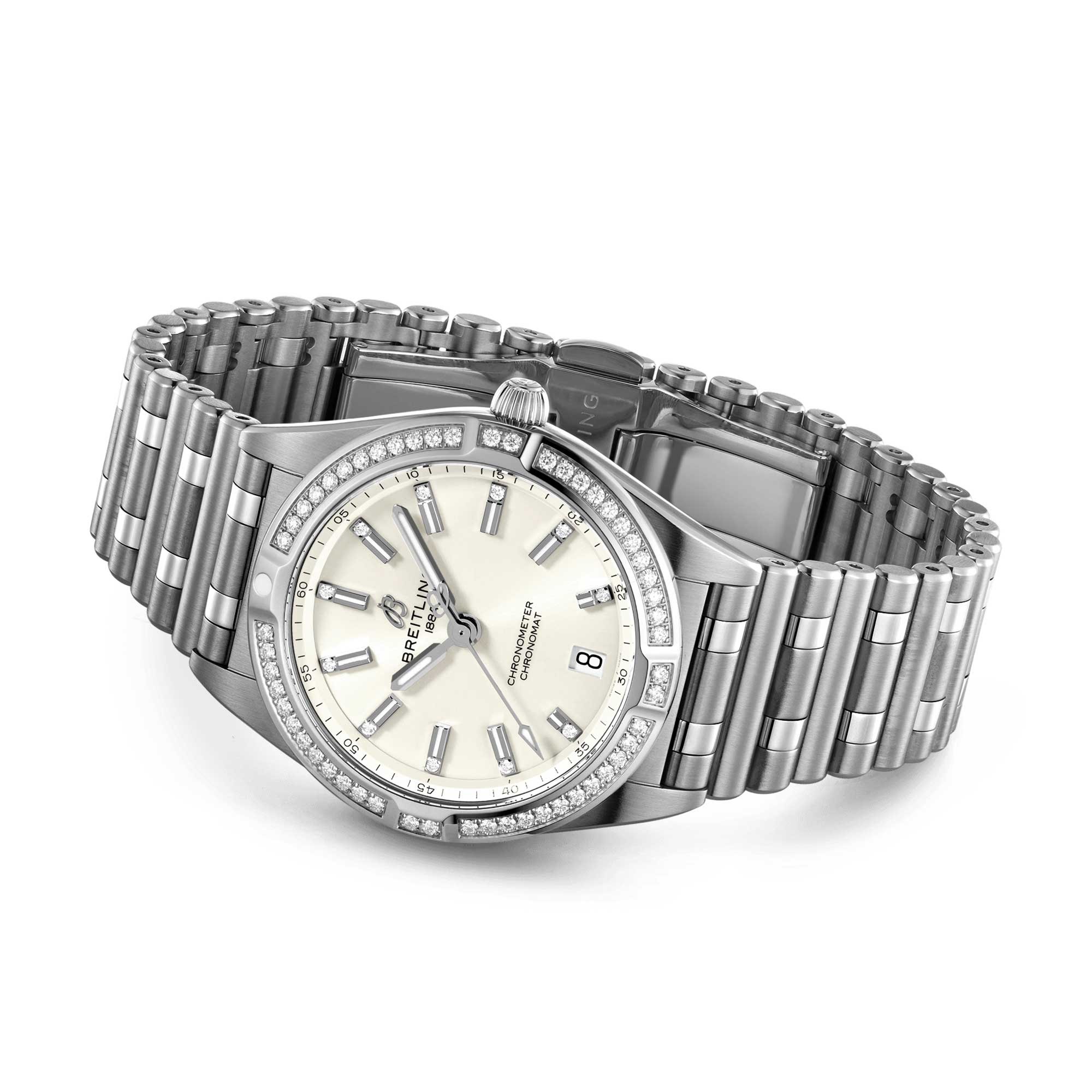 Introducing the Breitling Chronomat Quartz 32mm Ladies Watch A77310591A1A1, the epitome of elegance and functionality. Designed for the modern woman who values precision and style, this timepiece is an exquisite companion that will elevate any ensemble.