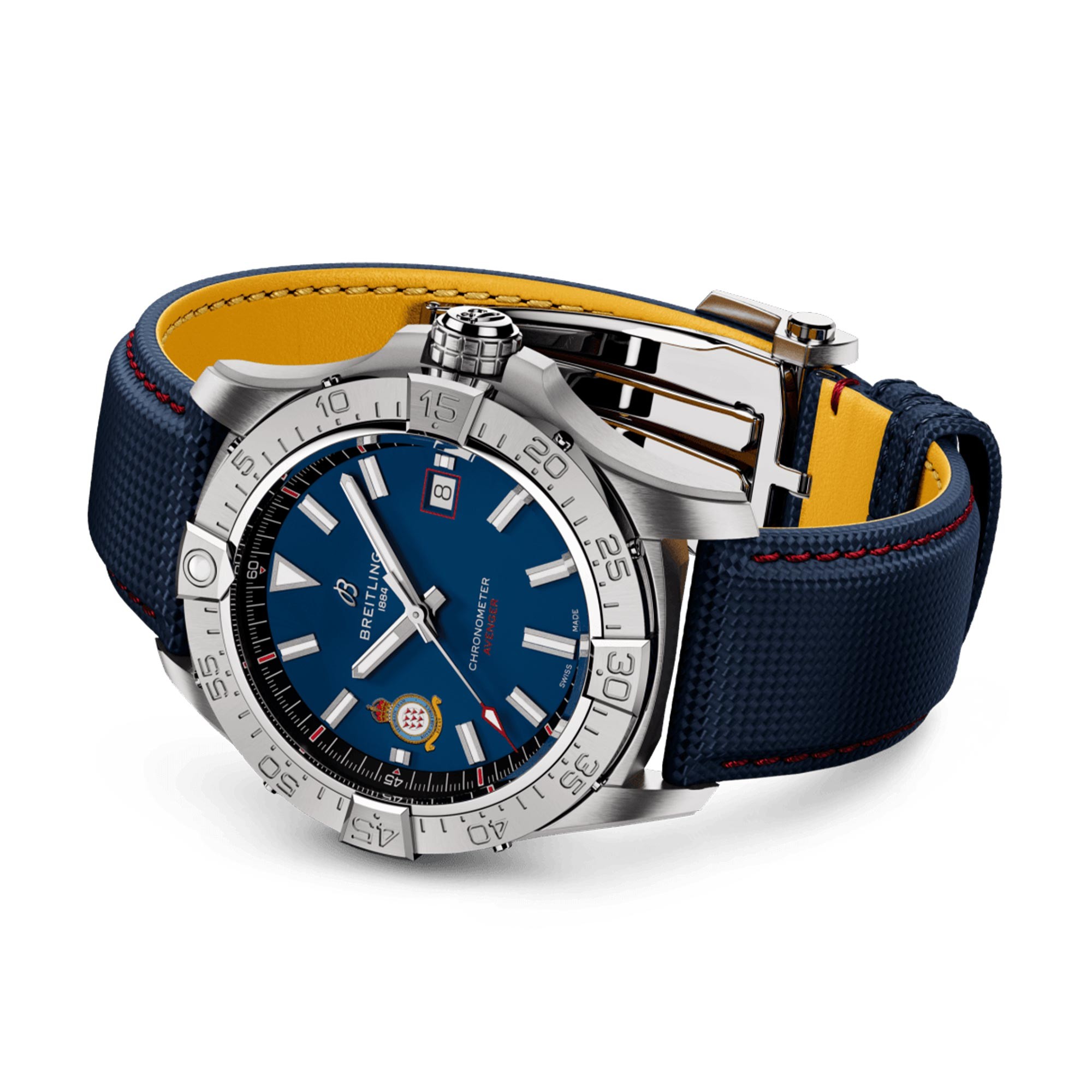 The watch's well-balanced design is enriched with stylish details that speak to the partnership. Drawing from the colours of the Red Arrows insignia, the blue-and-black dial features red highlights, including the tip of the seconds hand. Meanwhile, the team's famous emblematic crest, originally designed in 1980 and featuring the word "eclat"[meaning "brilliance"], takes pride of place at 9 o'clock The collaboration continues to the caseback, featuring the markings of the Red Arrows' 60th anniversary display season and the number of the limited edition. The 42mm-diameter case is made from stainless steel and water-resistant to 300 metres, offering toughness and reliability. It comes with the option of a three-row stainless-steel bracelet, or a blue military leather strap with bold contrasting red stitching. At its heart is the powerful COSC-certified Breitling Calibre 17 automatic movement, delivering up to 38 hours of power reserve.