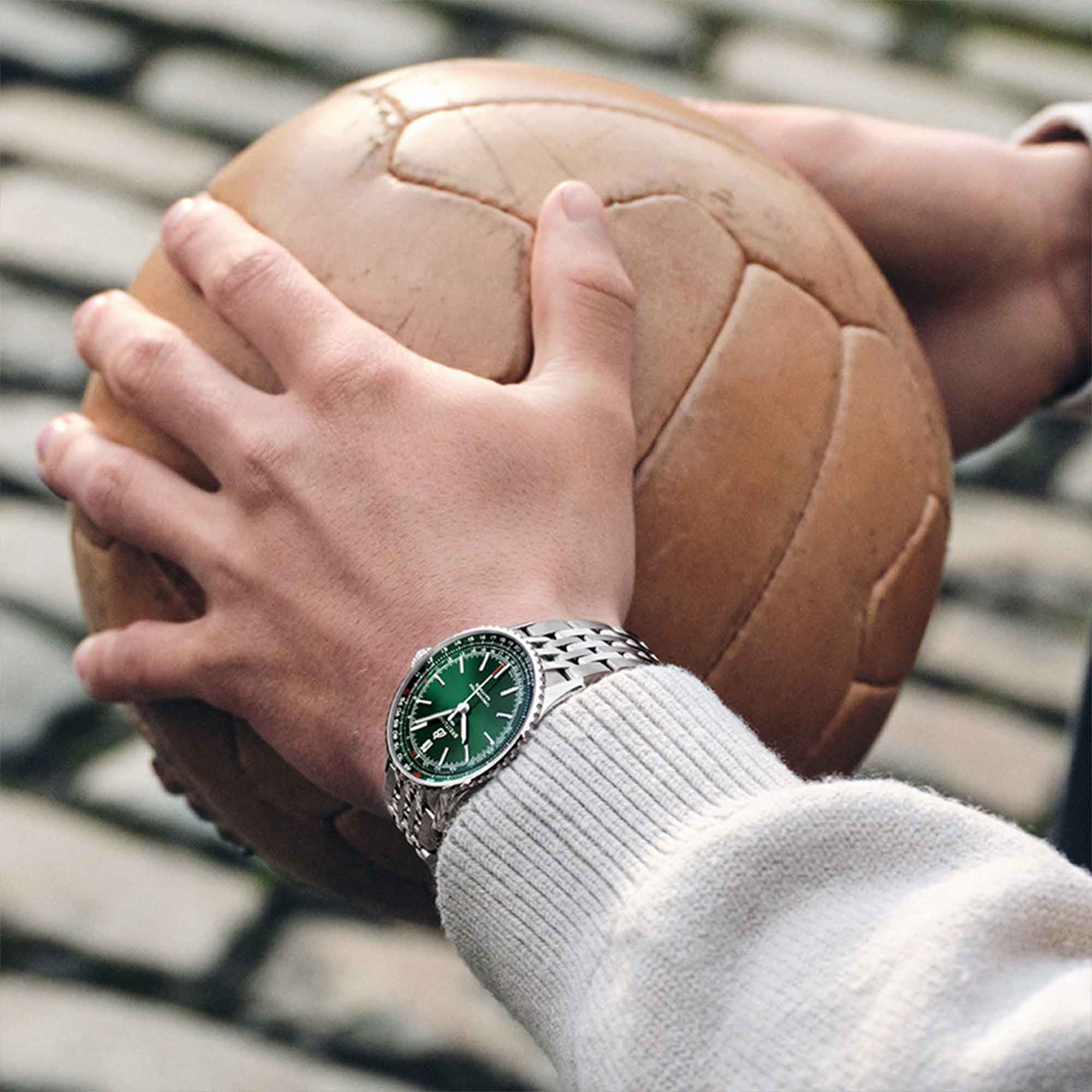 The Navitimer Automatic and Automatic GMT 41 distill the iconic look, omitting the chronograph yet preserving a balanced dial composition. The central placement of the 24-hour scale on the GMT and the Automatic’s clean face, ensure the intricate slide rule stands out while streamlining the overall aesthetics. Further refining the collection, the notched bezel was incorporated for a contemporary touch, and alternating polished and brushed finishes add a dynamic play of light. Straps in alligator leather and bracelets with a seamless butterfly clasp offer comfort and convenience. The palette includes colourful dials, encased in a choice of stainless steel or 18 k red gold.