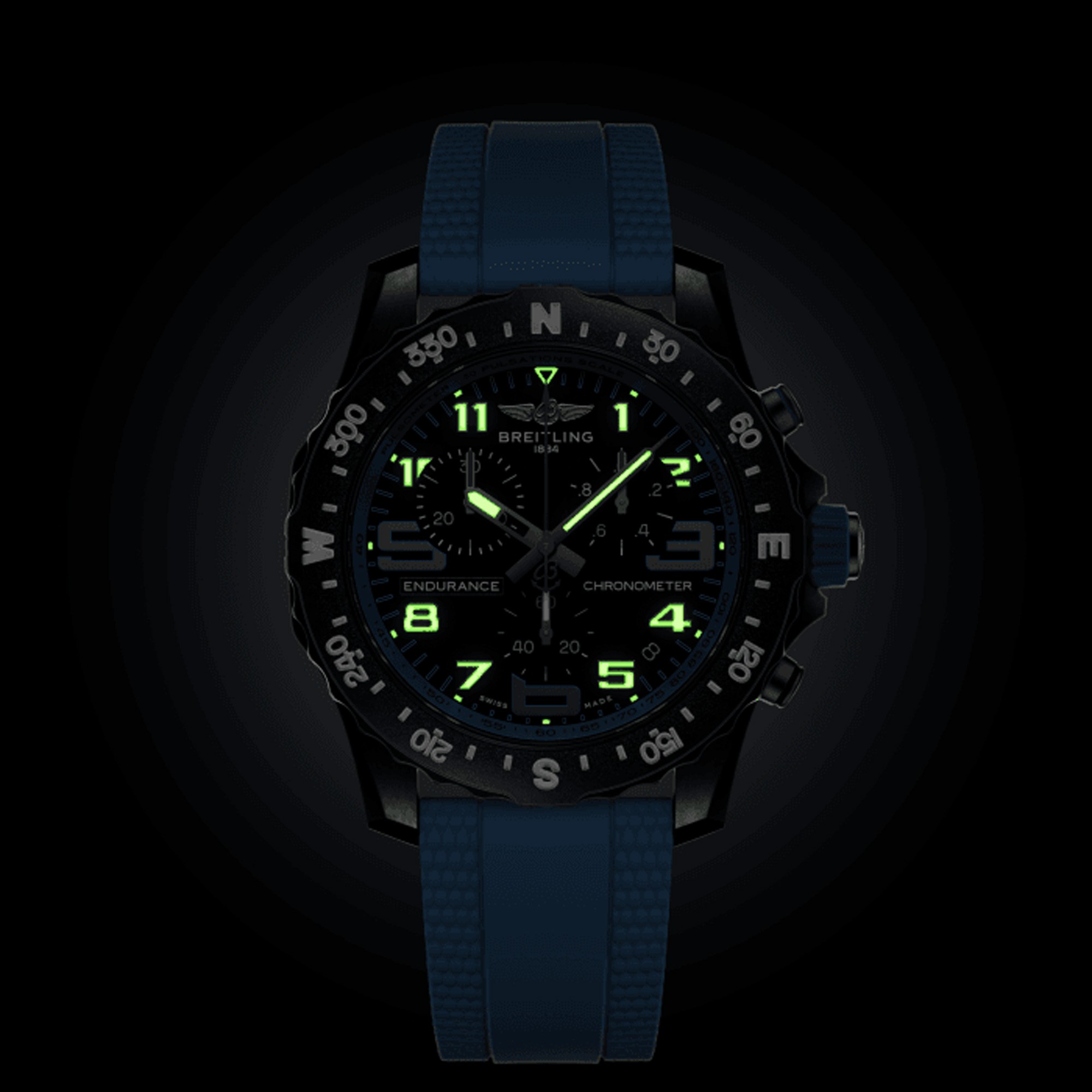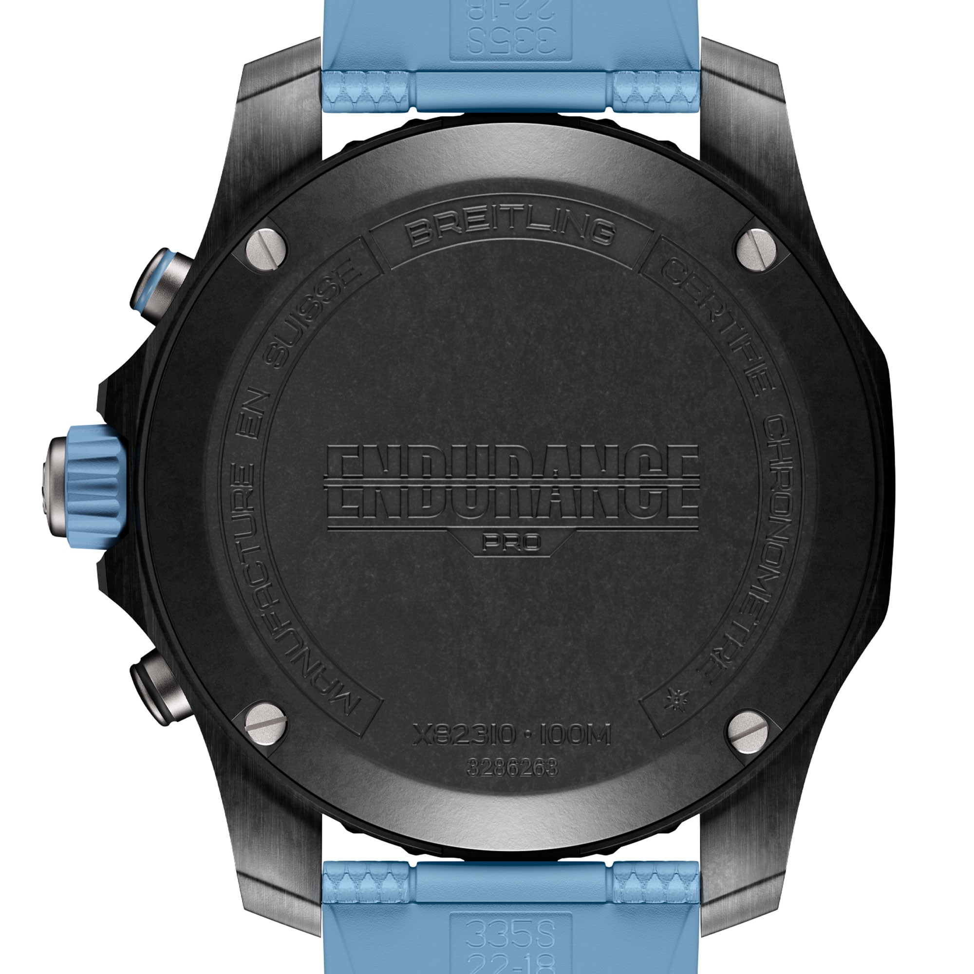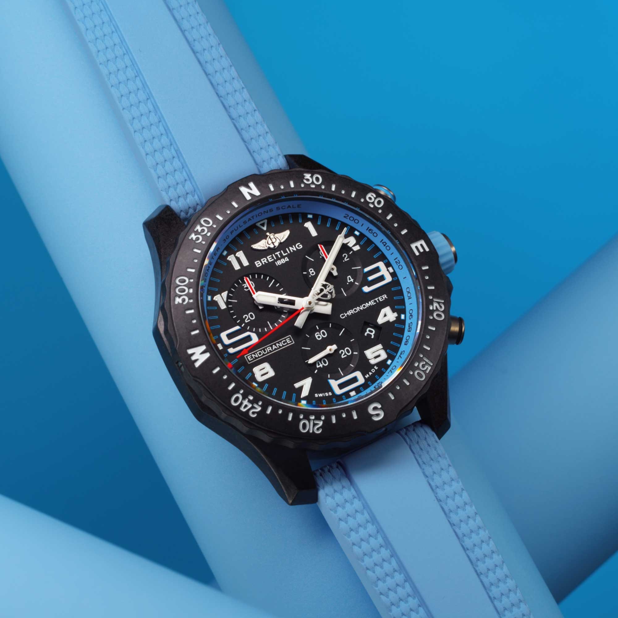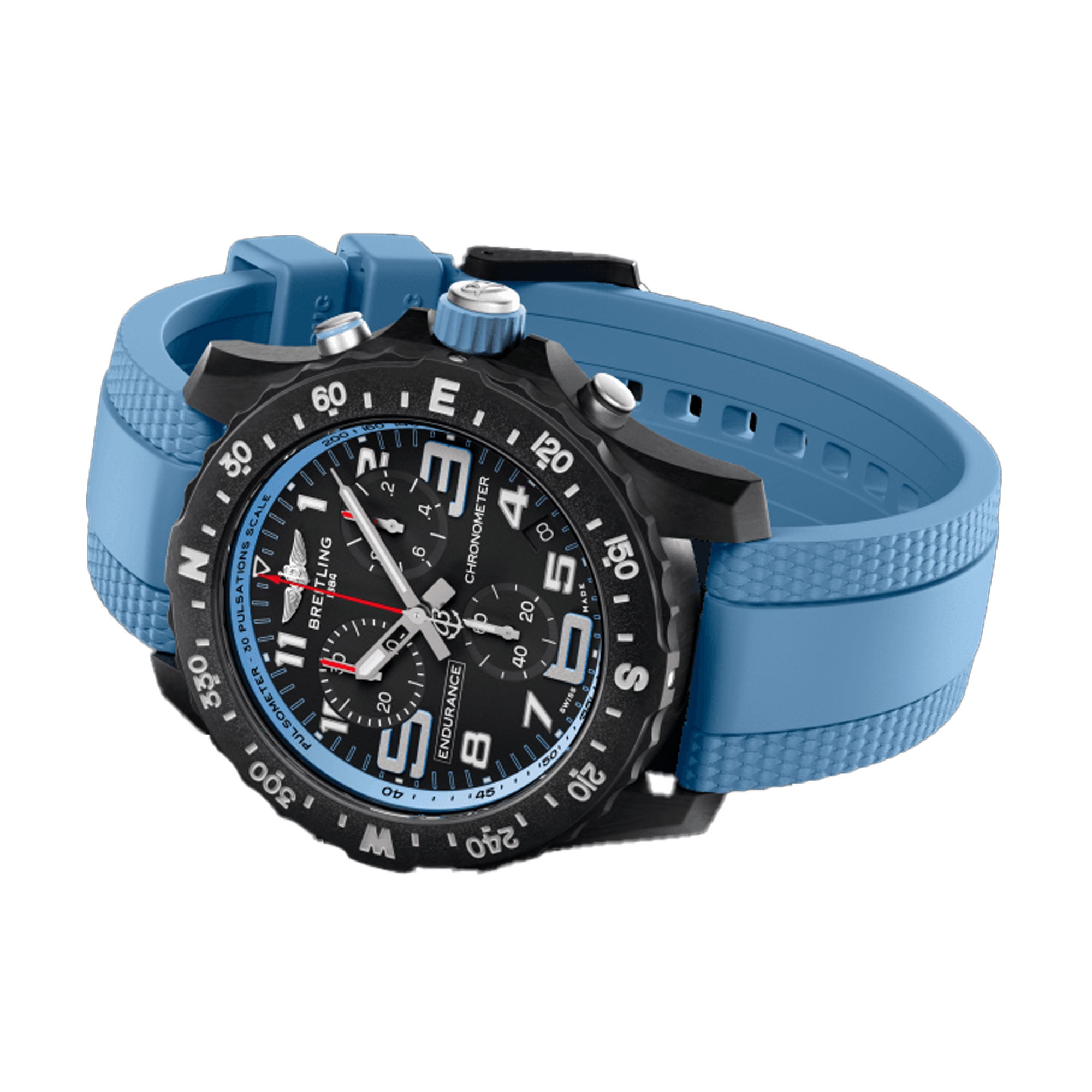 Designed to be both a lightweight timepiece for athletes and a casual, everyday sports chronograph, the Endurance Pro perfectly blends innovative technology with a vibrant design to produce the ultimate athleisure watch. Designed for men and women whose active lives combine a professional mindset with a sporty lifestyle, the Endurance Pro is up to the challenges of a rigorous workout, but fashionable enough for everyday wear. The Endurance Pro features an ultra-light Breitlight® case, a robust material 3.3 times lighter than titanium and 5.8 times lighter than stainless steel. Non-magnetic, thermally stable and hypoallergenic, Breitlight® is highly resistant to scratches, traction and corrosion. It also has a feel that is warmer than metal and a slightly textured effect, accentuating the originality of the design. Exclusive to Breitling, the material is 100-percent Swiss-made. In 44 mm or 38 mm, the Endurance Pro is available to athletes with a multitude of colorful dials and rubber straps all fitting a Breitlight® tang-type buckle. The two sizes are respectively powered by Breitling's Caliber 82 and 83, both COSC-certified SuperQuartz™ chronographs delivering exceptional precision.