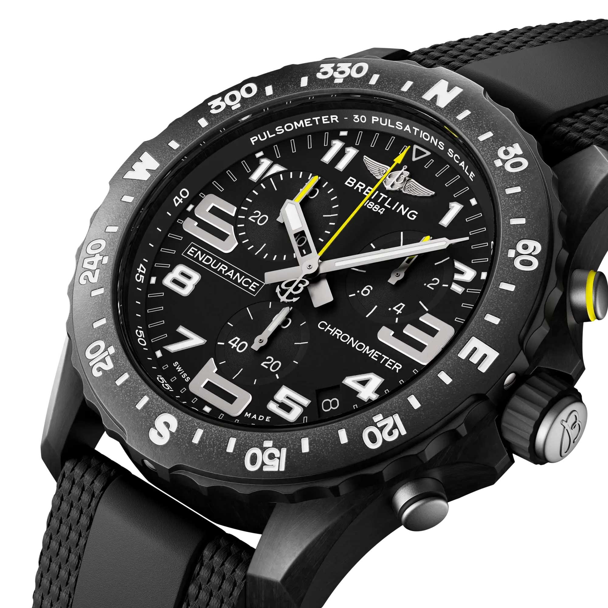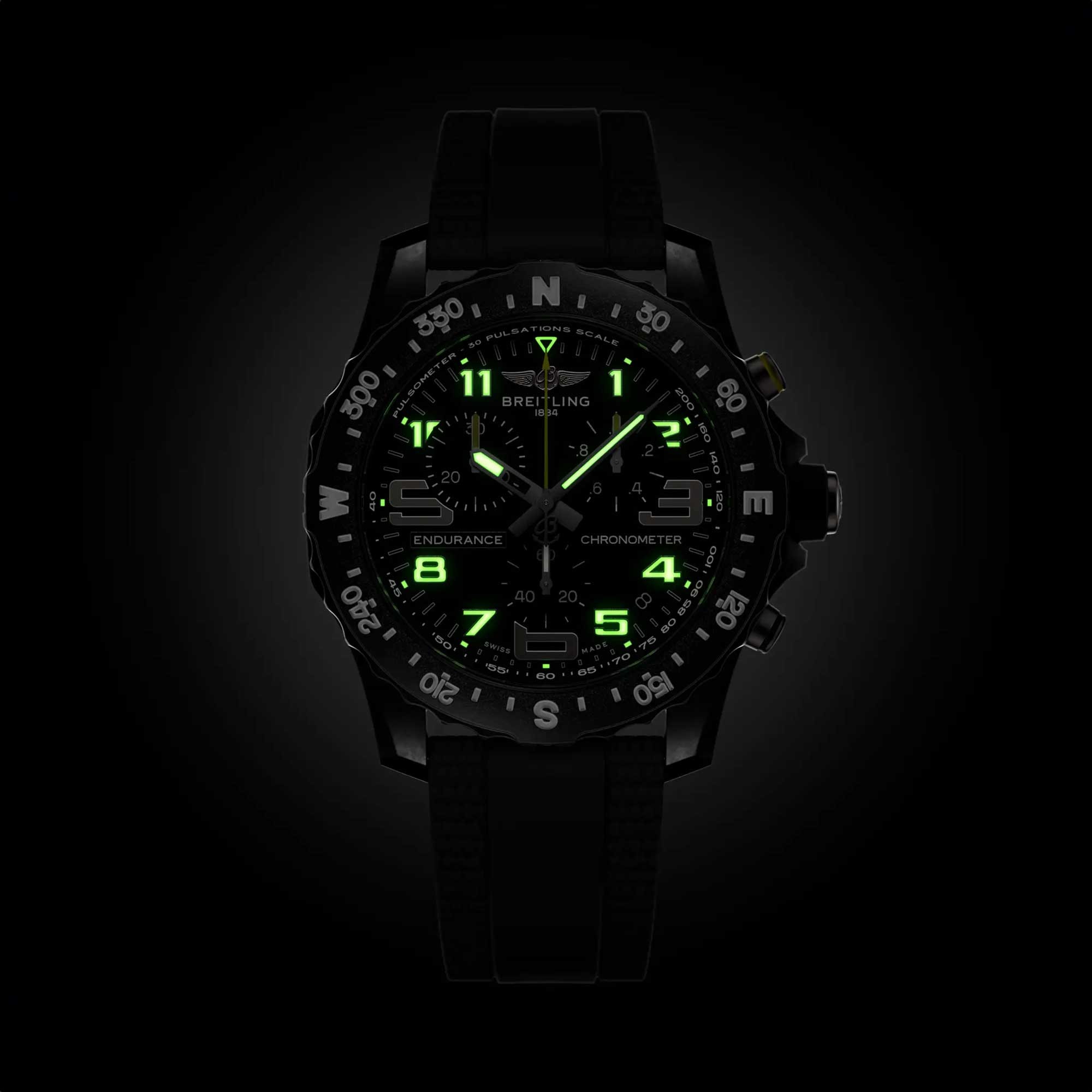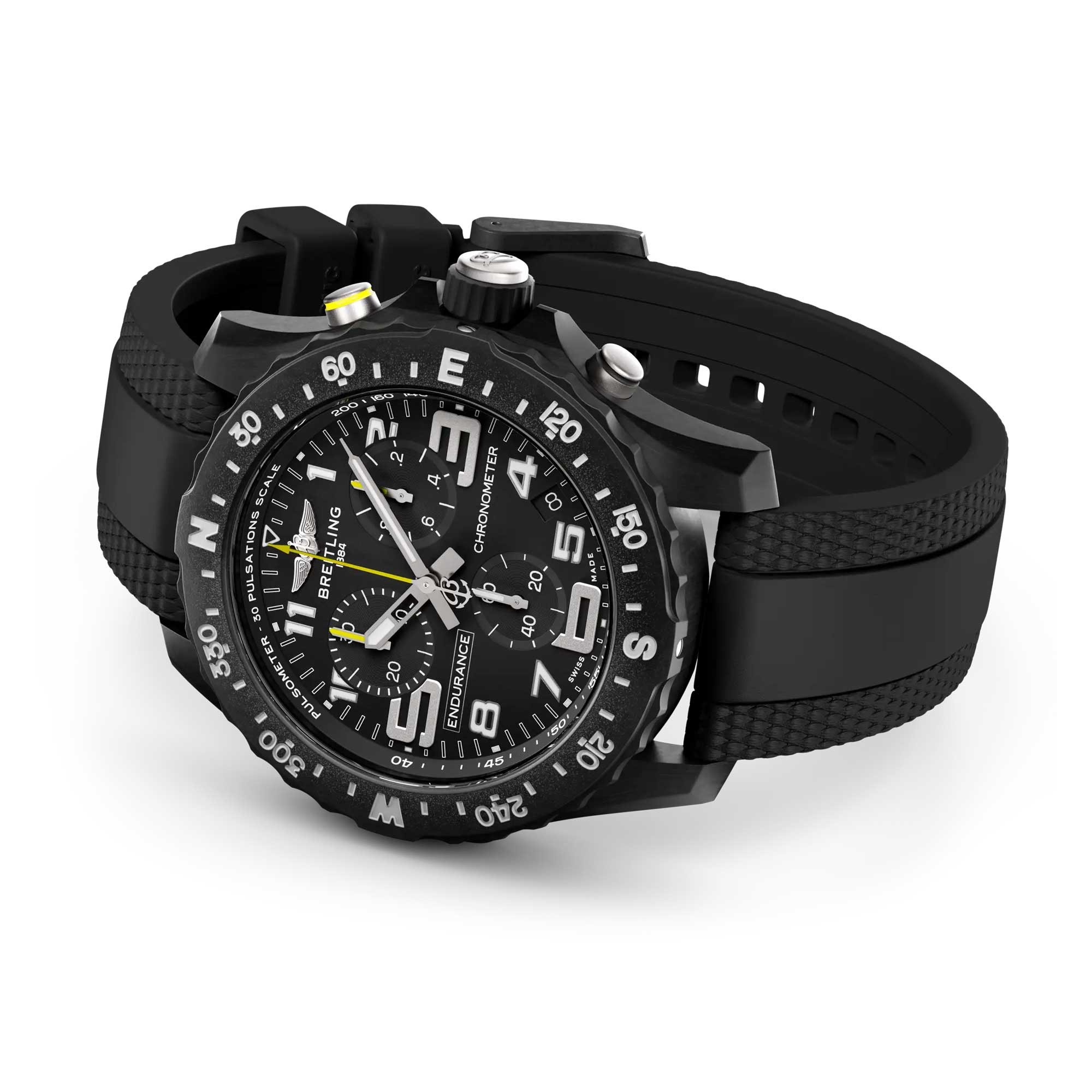 The black leather strap, equipped with a pin buckle clasp, combines comfort with a secure fit. Packaged in premium Breitling presentation packaging, this timepiece makes a distinguished statement. Explore a seamless blend of craftsmanship and function only found in the Breitling Professional Endurance Pro 44mm X82310E51B1S2.