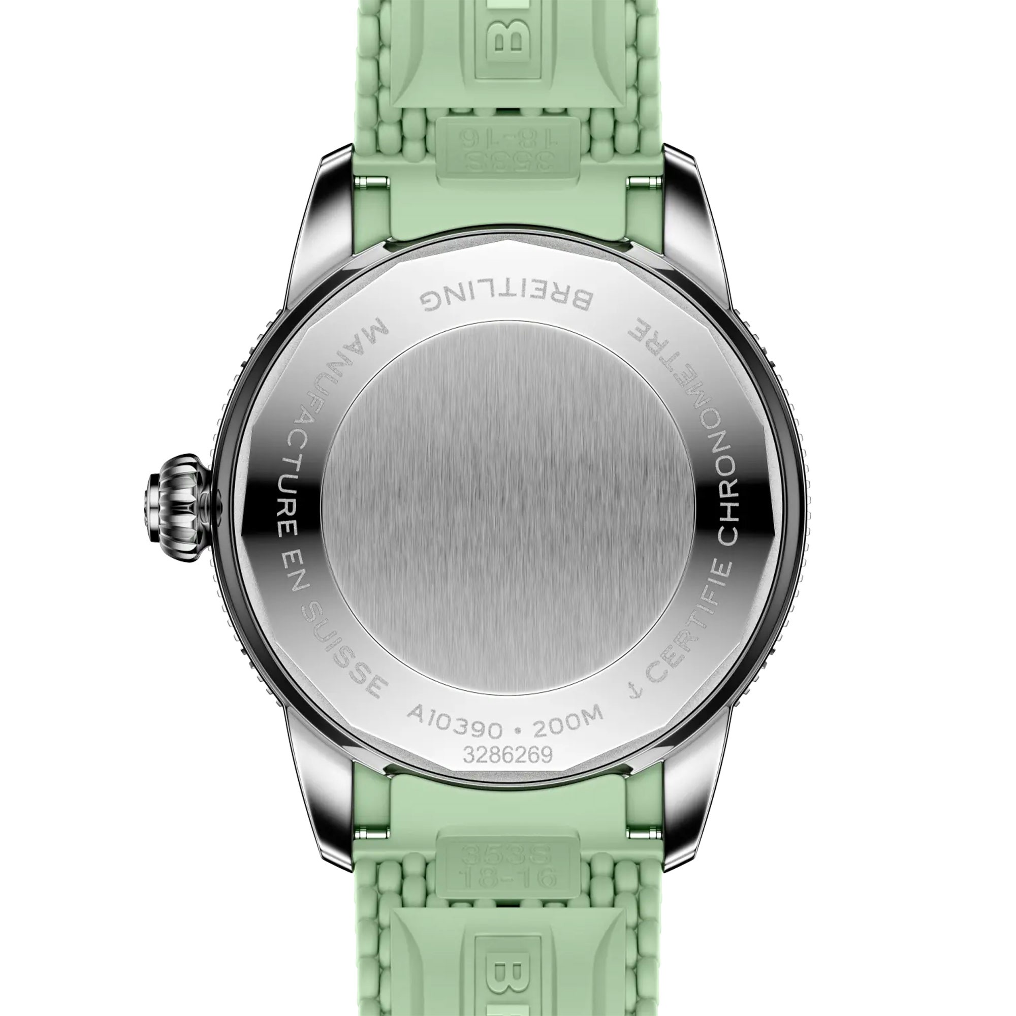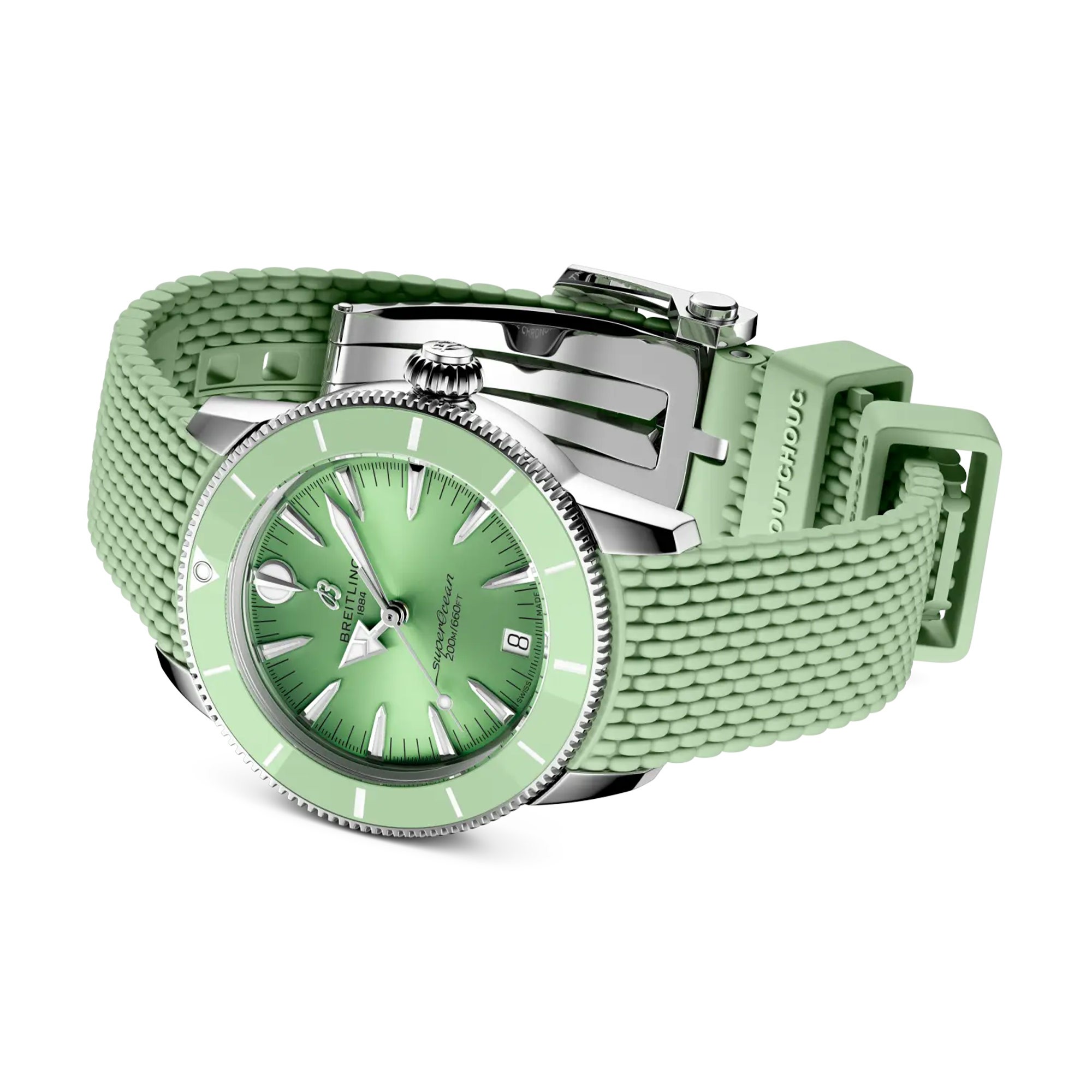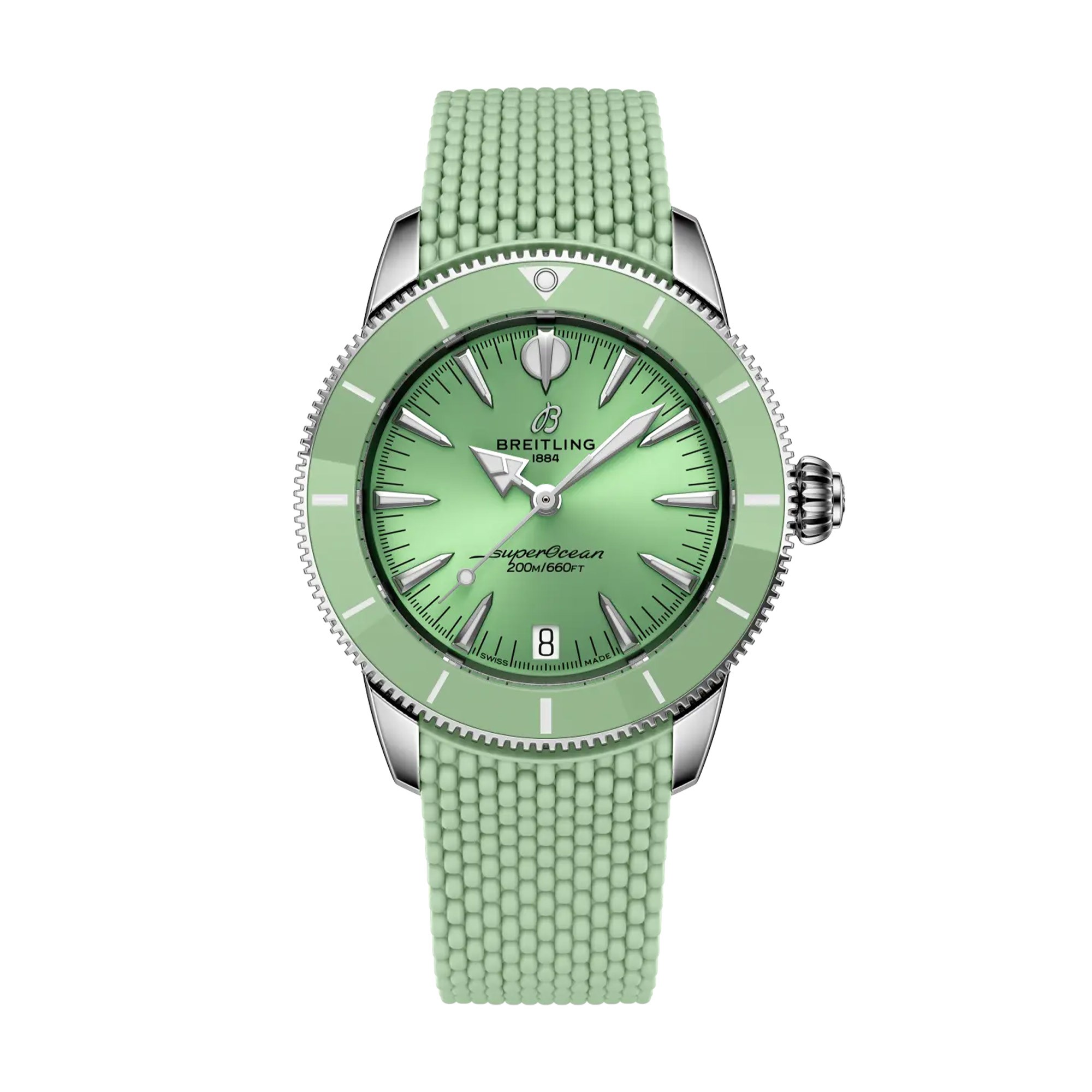 Introducing the Breitling Superocean Heritage Automatic 36mm Watch A10390361L1S1, a fine example of precision engineering and timeless design. This watch features a robust automatic movement that delivers reliable timekeeping. The striking green dial with baton markers offers a sophisticated yet sporty look, ensuring visibility in all conditions.