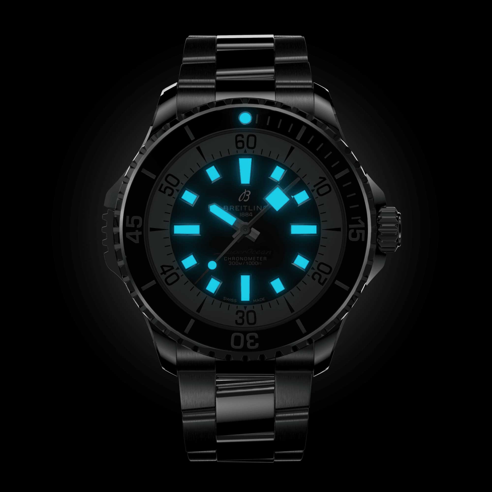 The cambered sapphire glass, glare-proofed on both sides, guarantees unparalleled clarity and durability. Whether you're in the boardroom or exploring the depths of the ocean, this watch can withstand the elements with its remarkable water resistance of 300 metres.