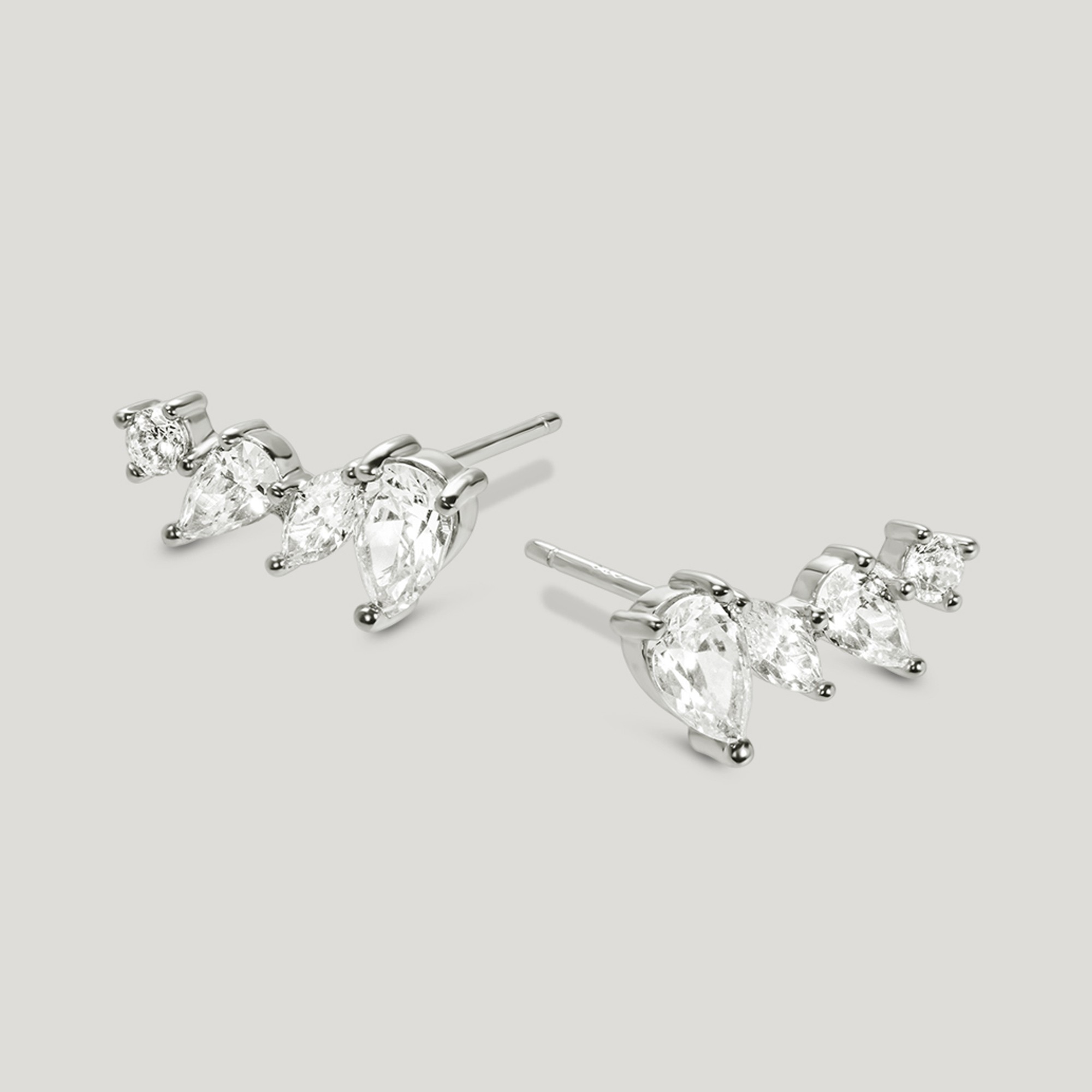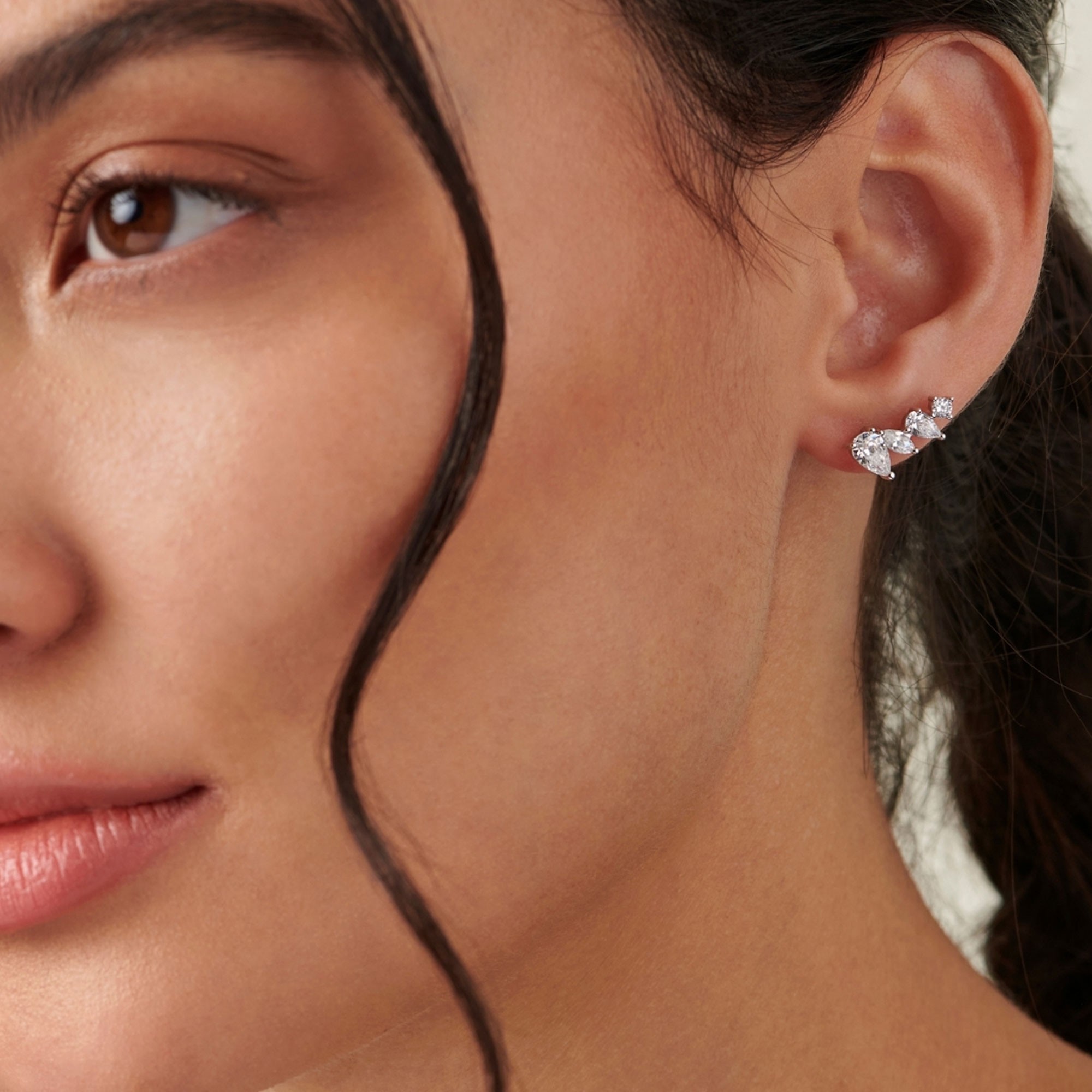 London Abigail Mixed Cut Climber Stud Earrings CE925W-ABIG