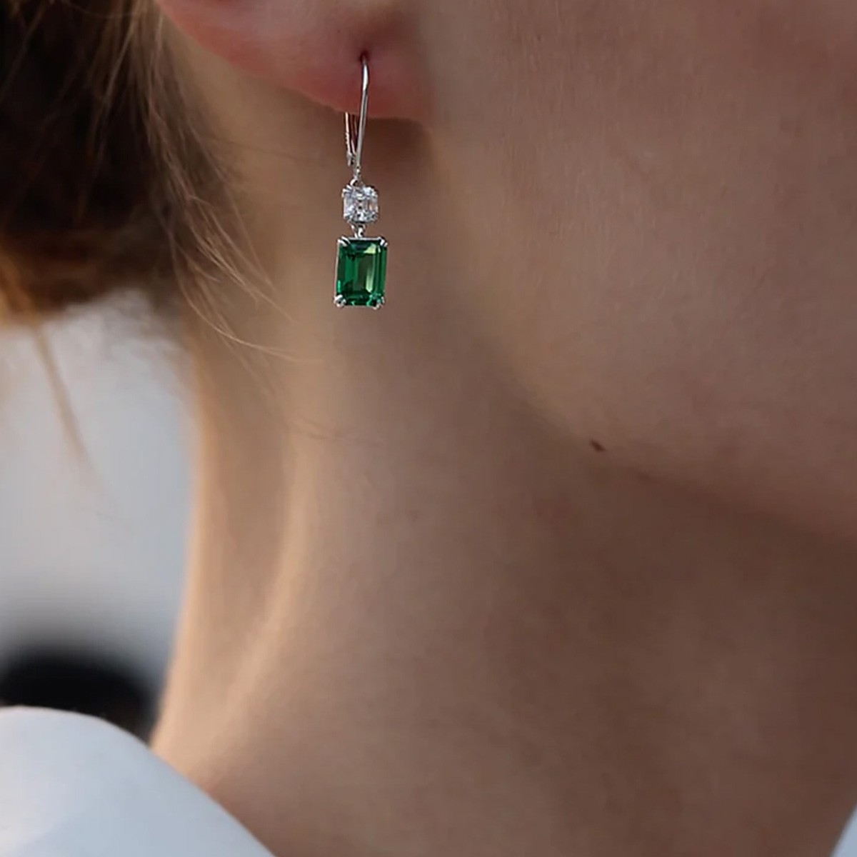Crafted from silver with white gold plating, these earrings boast a timeless design that will never go out of style. The combination of the glowing white gold tone and the mesmerising emerald green stones creates a breath-taking contrast that is sure to catch everyone's attention.