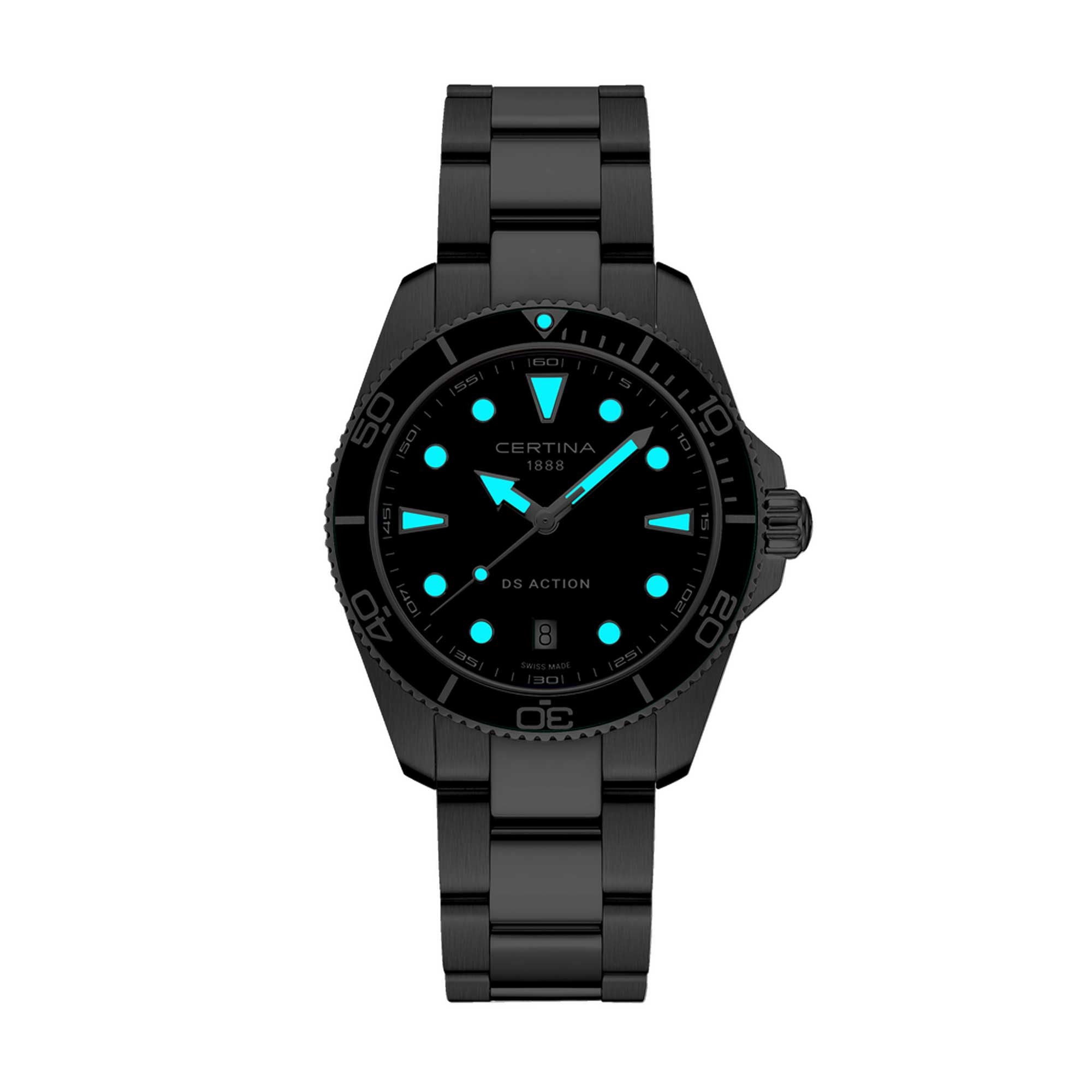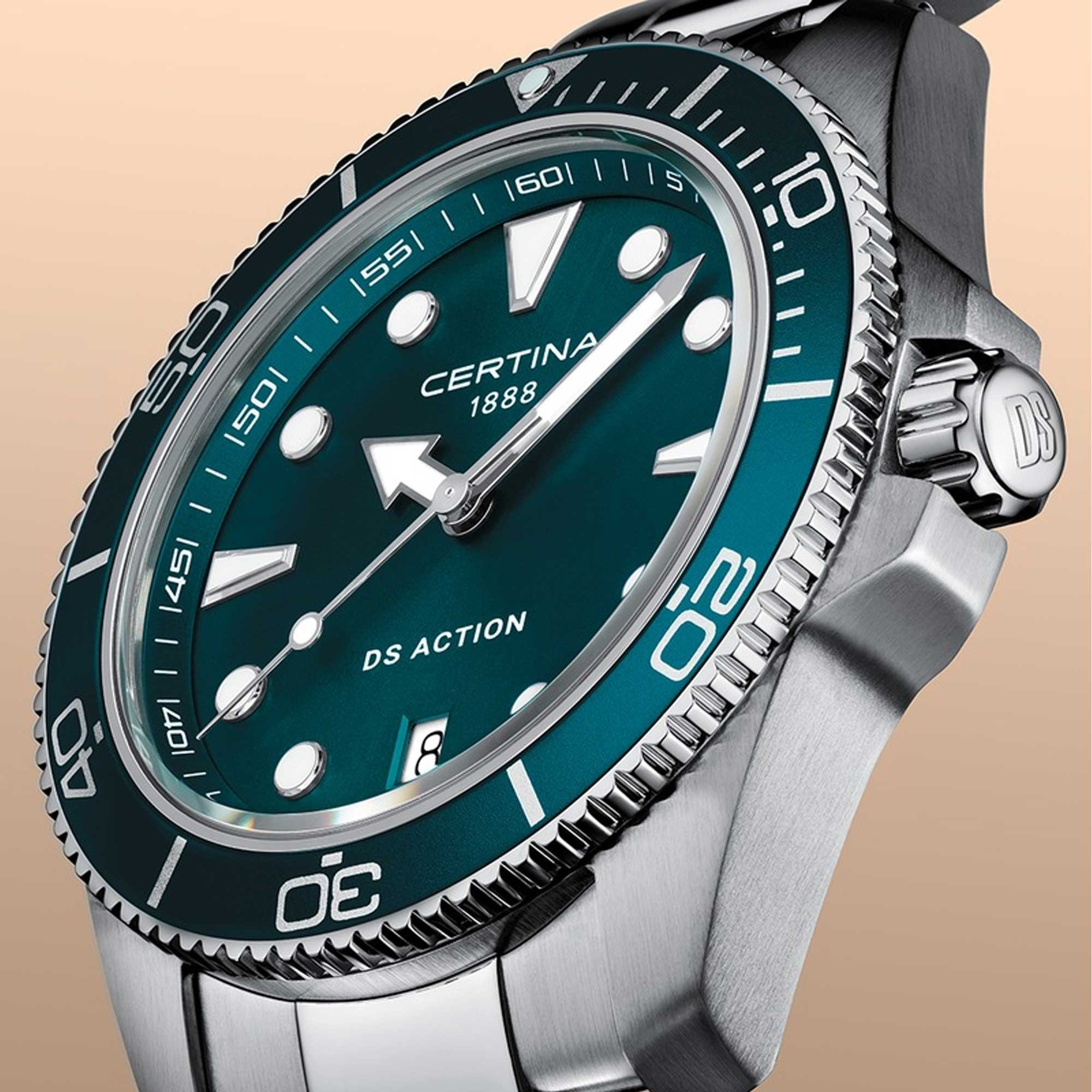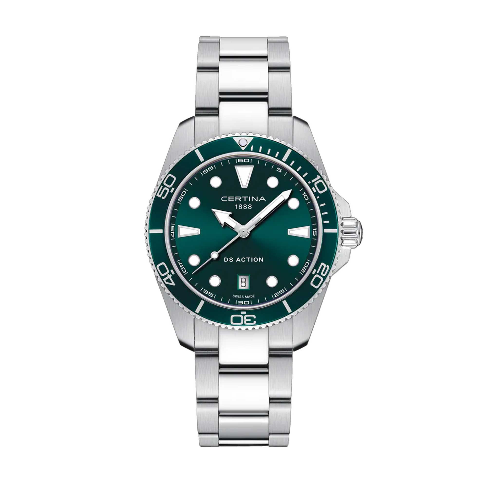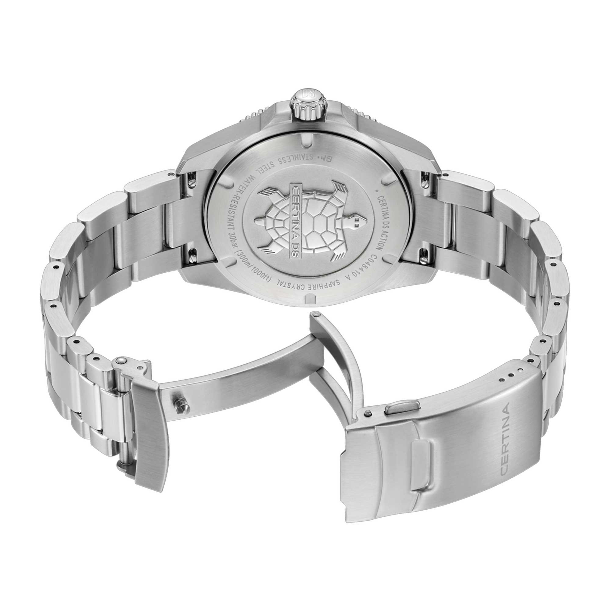 The Certina DS Action 40mm Mens Watch C048.410.11.091.00 pairs Swiss precision with rugged build. Crafted in stainless steel, it features a 40mm round case and matching metal bracelet with a secure folding clasp. A reinforced case back and the DS concept add confidence for daily wear and tougher conditions.
