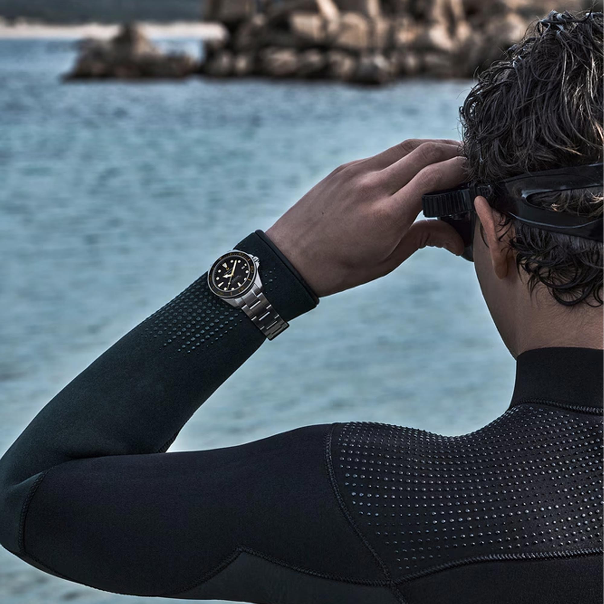 Crafted with a robust stainless steel case, measuring 40.5mm in width and 14.10mm in depth, this watch is both stylish and durable. The sapphire crystal glass provides scratch resistance, safeguarding the dial from everyday wear. With a water resistance of up to 300 metres, it is ideal for aquatic activities.
