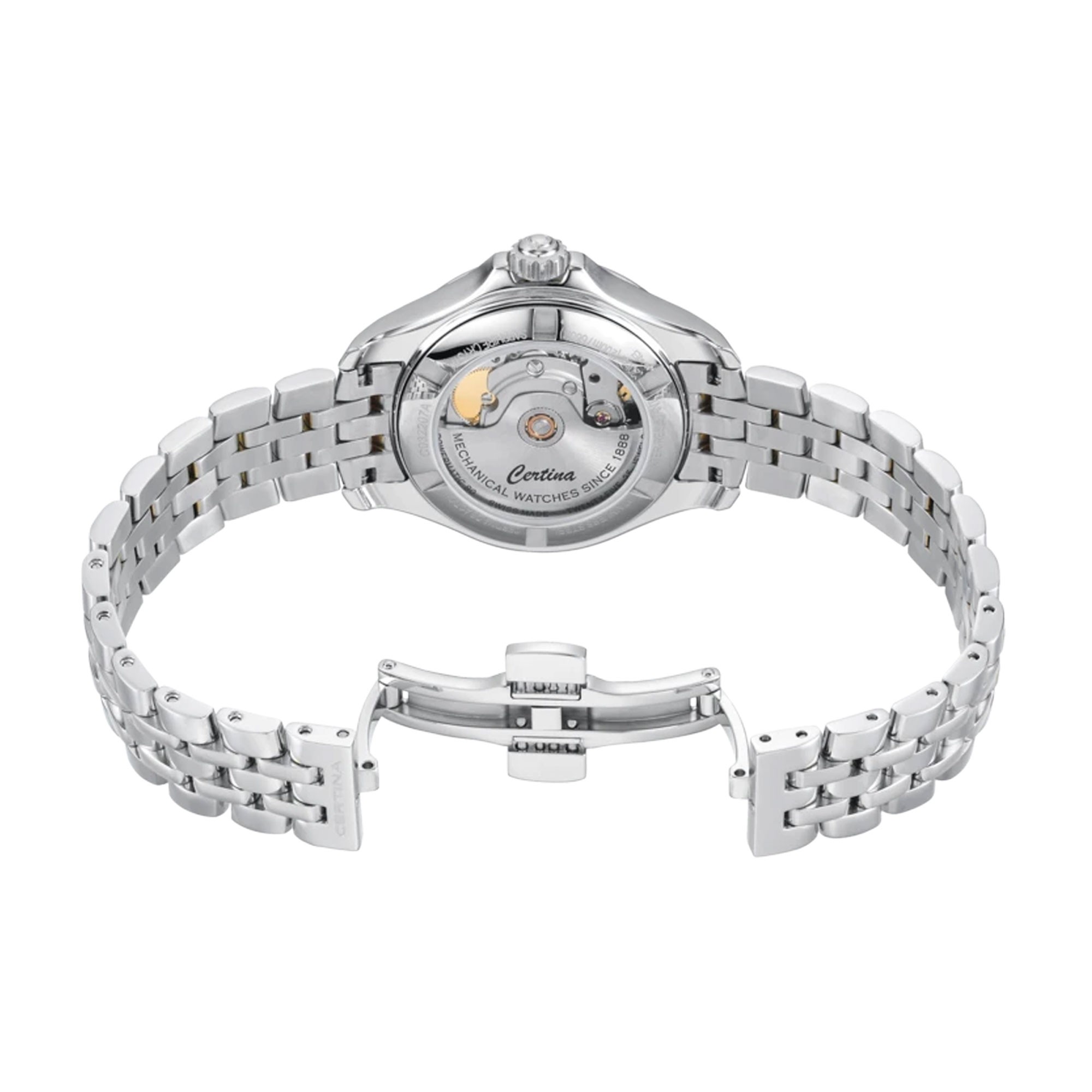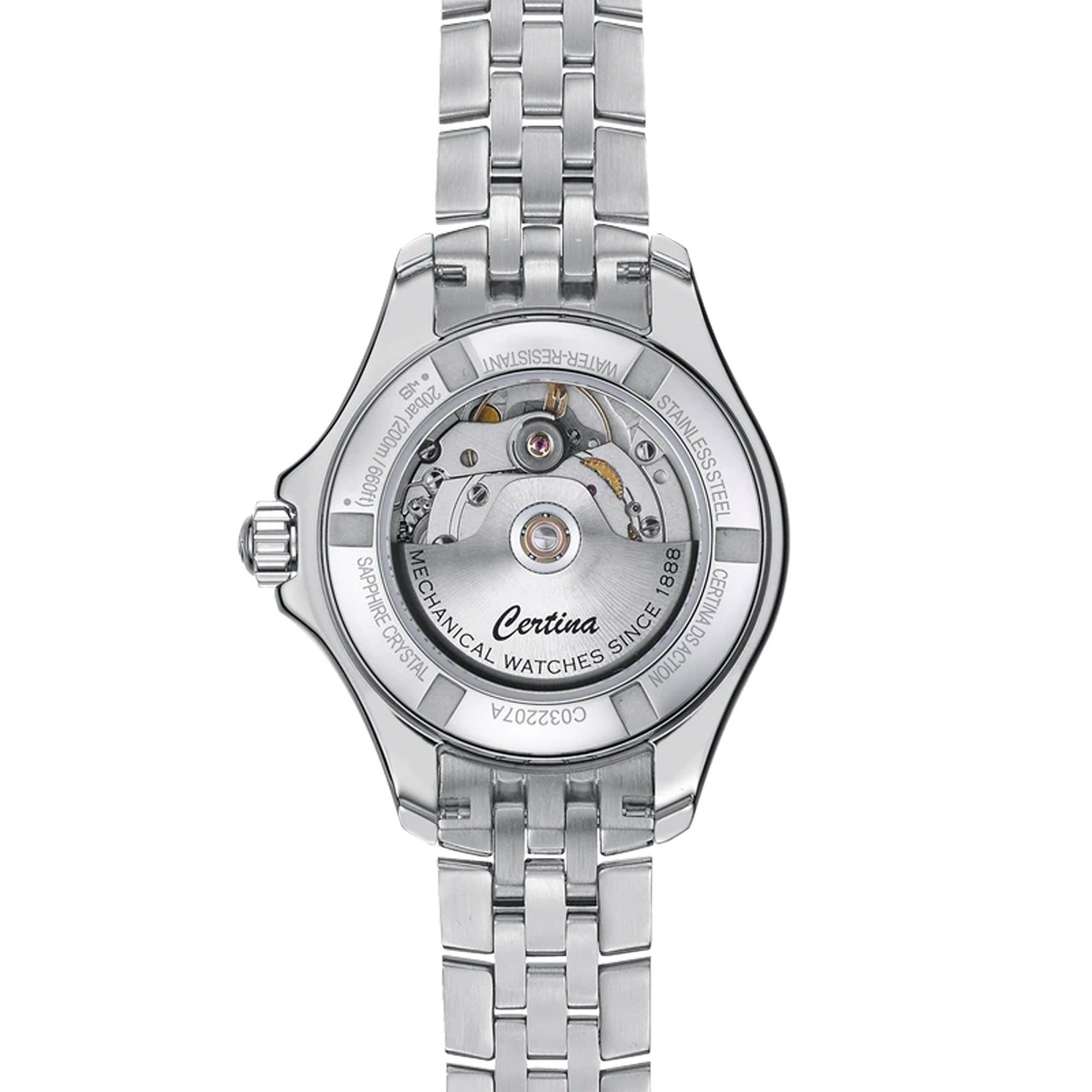 Introducing the Certina DS Action Powermatic 80 34mm Ladies Watch C032.207.11.046.00 - a masterpiece of precision and elegance crafted for the modern woman. This stunning timepiece seamlessly blends the reliable automatic movement with the sophistication of a diamond dial, making it not just a watch but a statement of style and confidence. Encased in robust stainless steel with a watch case width of 33.8mm, it's perfectly sized for a lady's wrist, offering a combination of comfort and luxury that will elevate any outfit. The round face and silver case colour further enhance its classic appeal, ensuring it's a versatile piece suitable for any occasion.