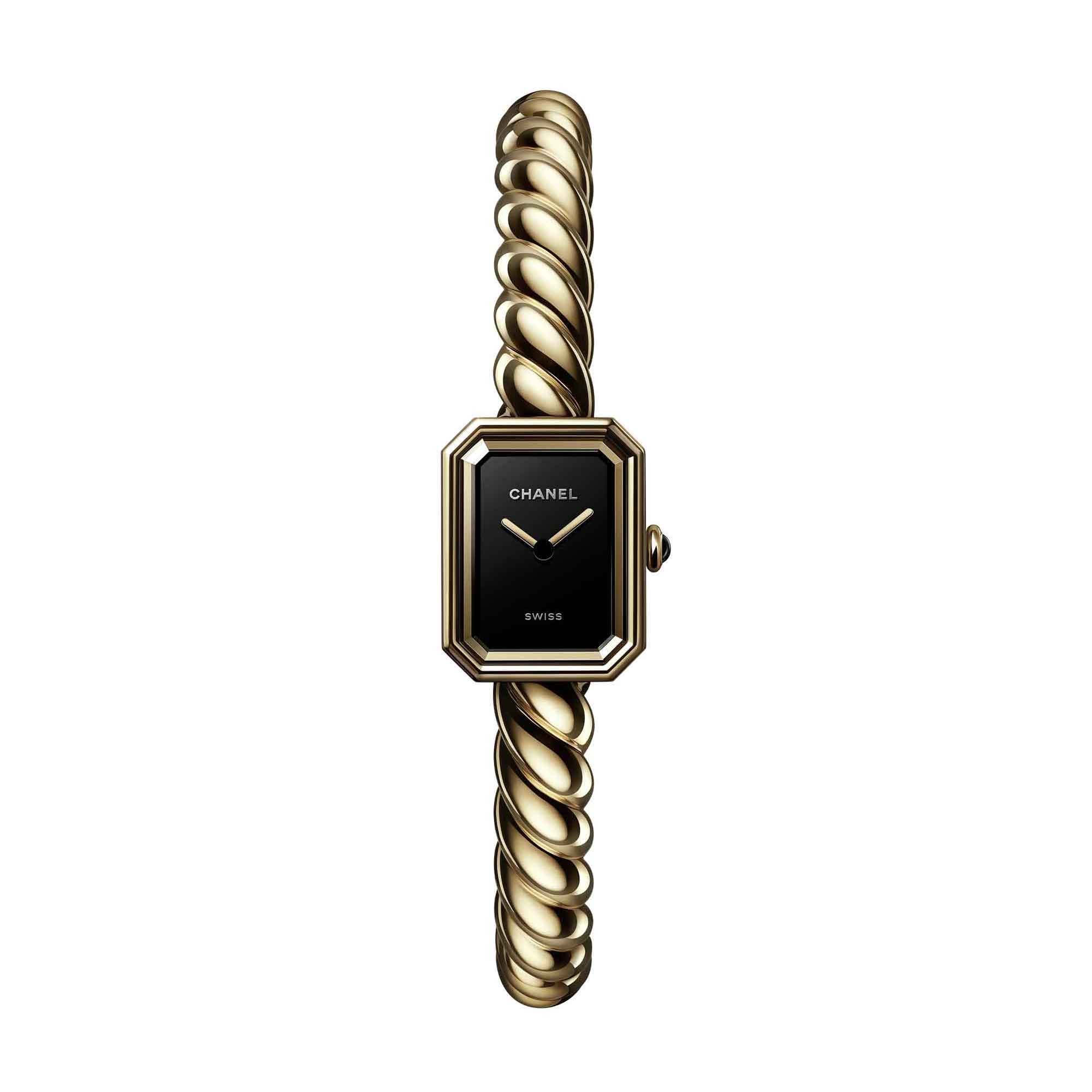 The CHANEL PREMIÈRE GALON WATCH H11048 is a masterpiece that embodies elegance and sophistication. Designed to be worn like fine jewellery, this timepiece features a twisted bangle-style strap, making it both comfortable and stylish. The watch is presented in an exquisite 18K yellow gold case, complemented by an 18K yellow gold crown topped with an onyx cabochon, adding a touch of luxury.