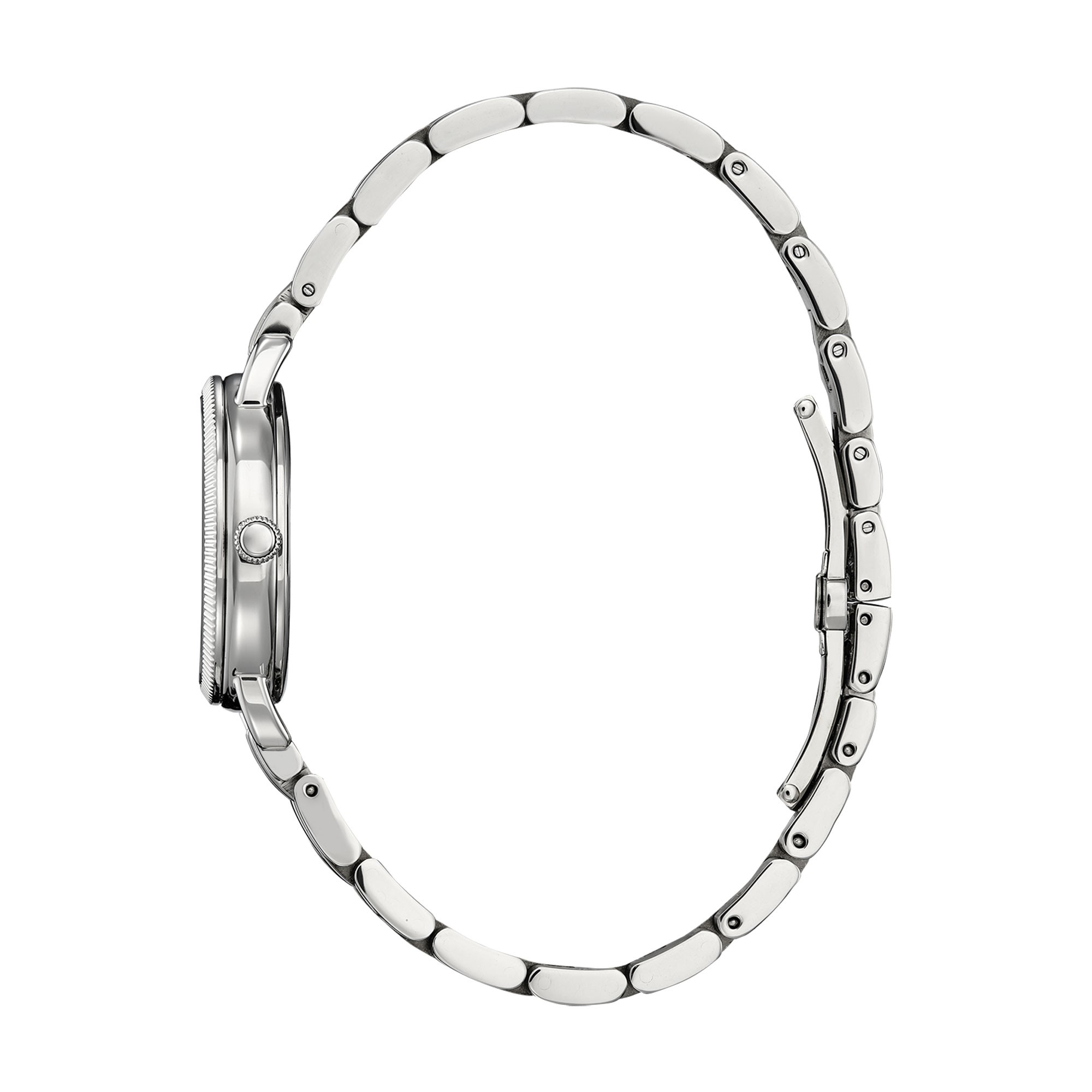 In addition to its remarkable functionality, the watch boasts an aesthetic that complements any outfit or occasion. The sleek, 29mm stainless steel case, coloured in lustrous silver, sits perfectly on the wrist, exuding an air of understated luxury. Its round case shape and meticulously crafted metal bracelet add to the overall allure, making it a versatile accessory ideal for both formal and casual wear.