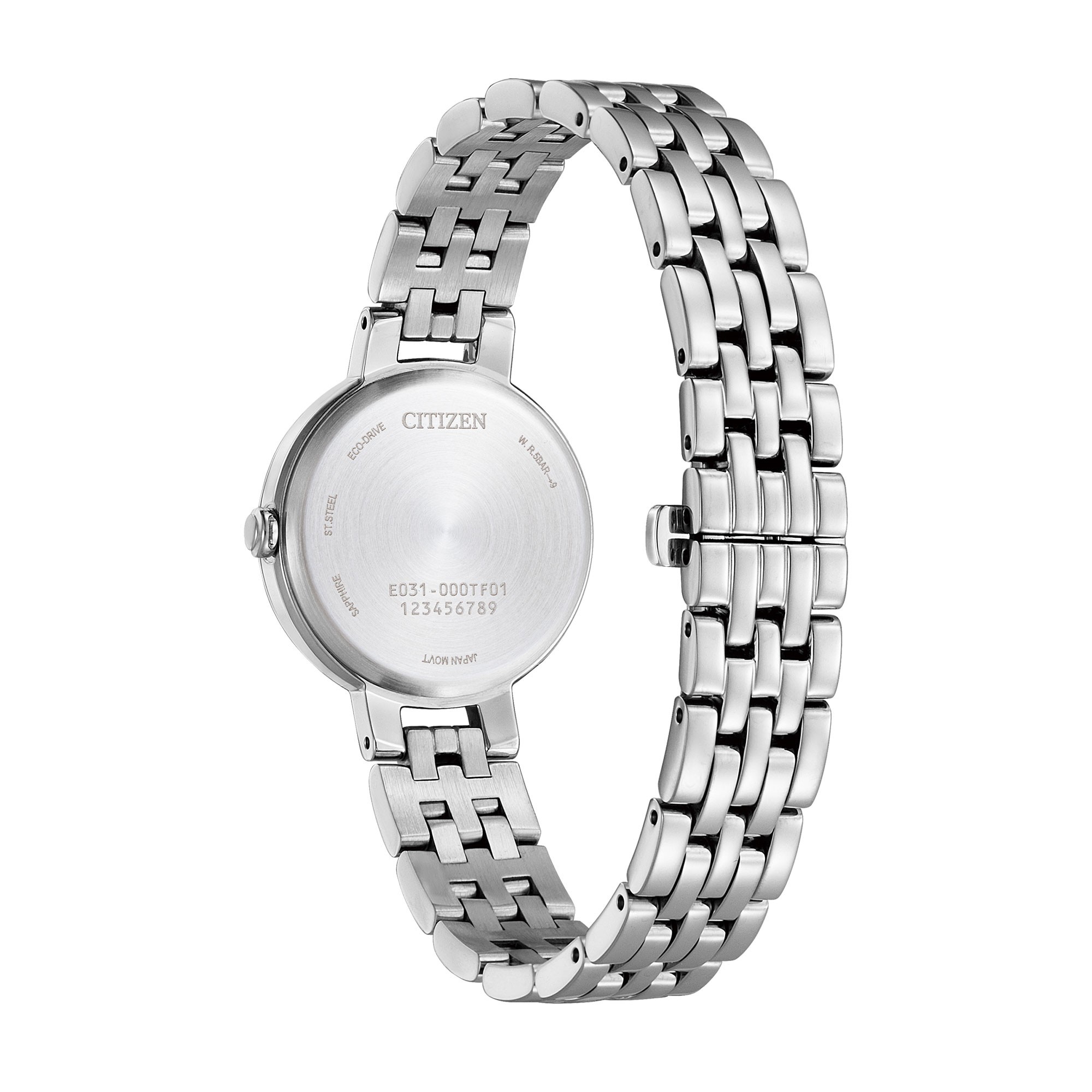 An elegant addition to our Citizen L collection, with a petite silver-tone stainless steel case and matching bracelet. A beautiful dark blue dial features stainless steel hands and markers and can be viewed under sapphire crystal glass. Sustainably powered by any light with our Eco-Drive technology, this timepiece will match your style, lifestyle and values. Water resistance to 50 metres.