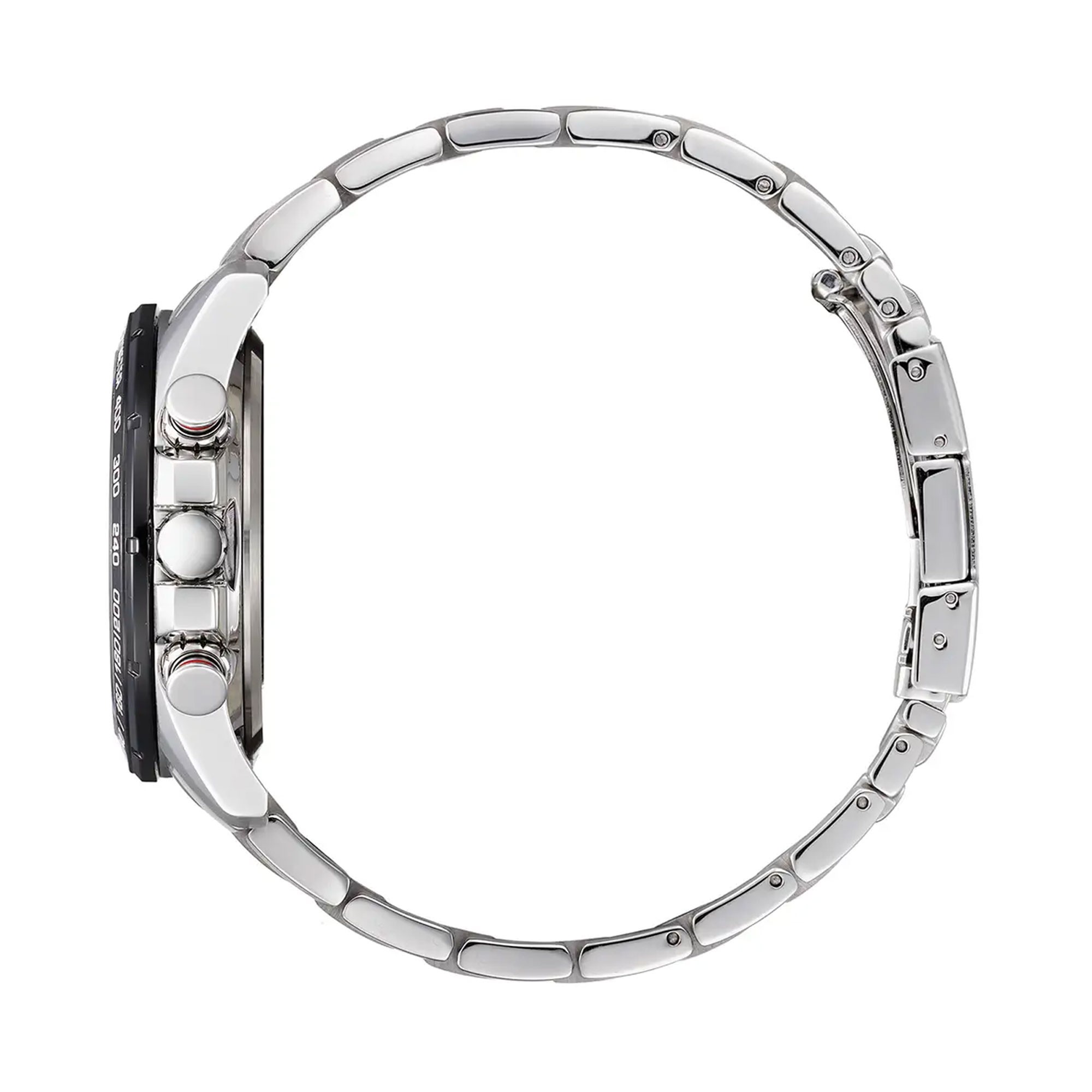 Designed to complement every aspect of your lifestyle, from formal soirées to casual outings, the watch boasts a sleek stainless steel case paired with a luxurious metal bracelet. The folding clasp ensures the watch remains securely on your wrist, offering both comfort and peace of mind. Water-resistant up to 200 metres, it's as ready for adventure as it is for everyday elegance.