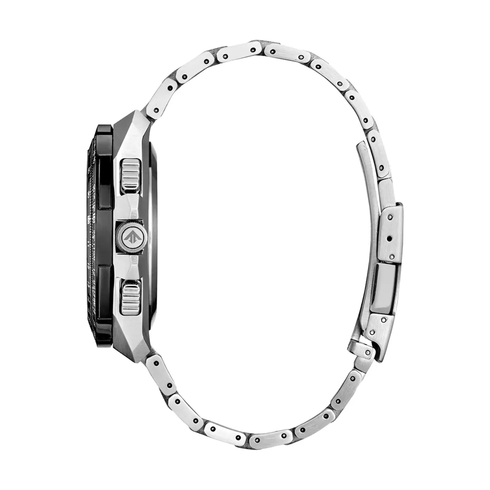 Powered by Citizen’s Eco-Drive technology, the watch harnesses any light source, eliminating the need for battery changes. Its radio-controlled atomic clock synchronisation ensures precise timekeeping. Additional features include world time for 43 cities, a 1/100 second chronograph with a 24-hour capacity, and a perpetual calendar.