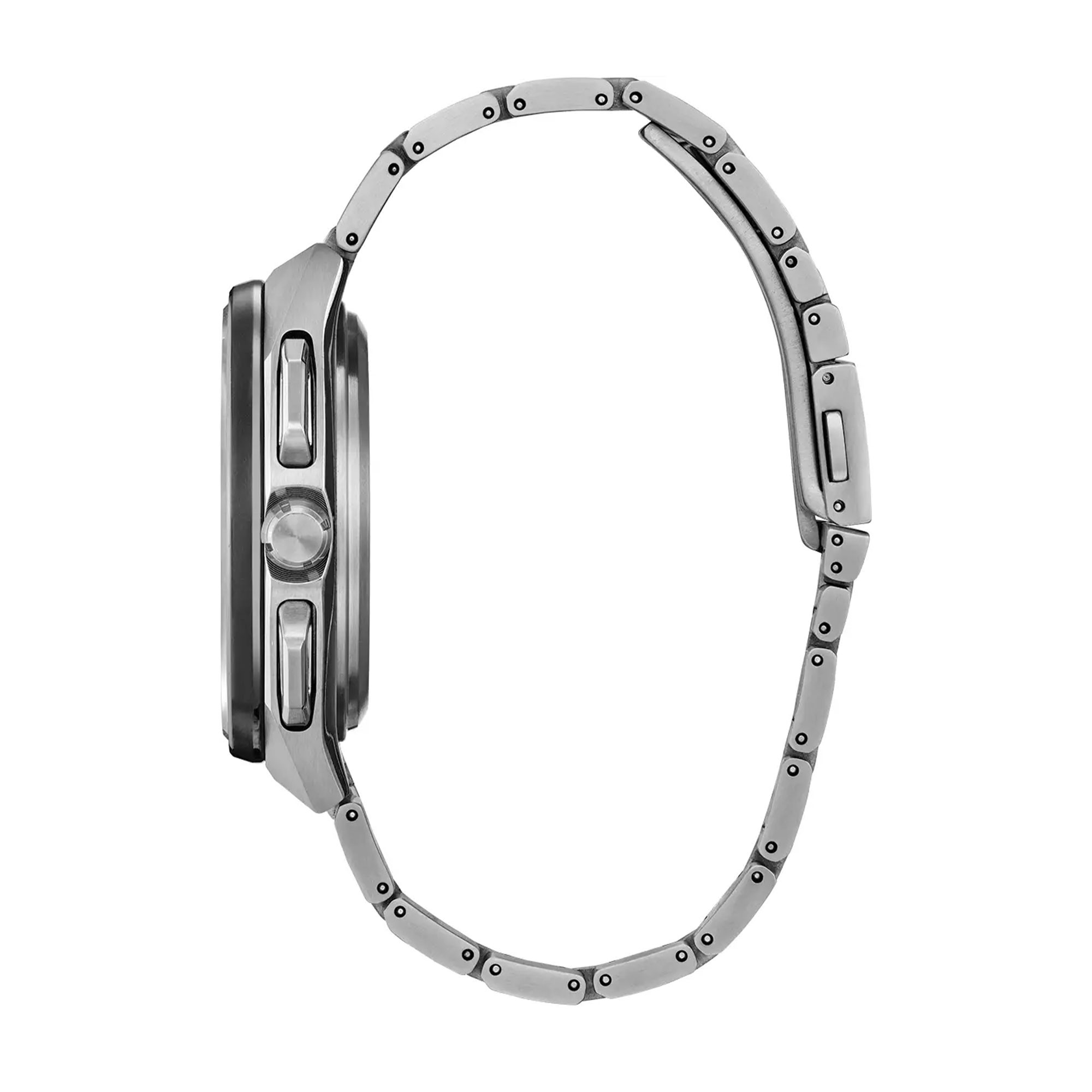Marking ten years since the launch of the original F100 models in 2014, Citizen now introduces the Satellite Wave. Inspired by satellites and the infinite expanse of space, the new watch matches future-cool styles with the world's fastest timekeeping signal reception speed from GPS navigation. A 45mm Super Titanium™ case and bracelet solidify the distinct integrated construction of the timepiece, while a duo of pushers and a conical crown provide a sporty and avant-garde touch. A world time bezel frames the cosmos-inspired dial, with black and applied silver-tone accents adding dimensionality alongside the utility of the watch's feature-packed sub-dial and date window. Advanced features of the Satellite Wave include a satellite GPS timekeeping system with the world's fastest reception speed– as quick as 3 seconds– a world time in 27 cities (40 time zones), daylight savings time indicator, power reserve indicator, light level power indicator, and day/date displays. Water resistant up to 100 metres.