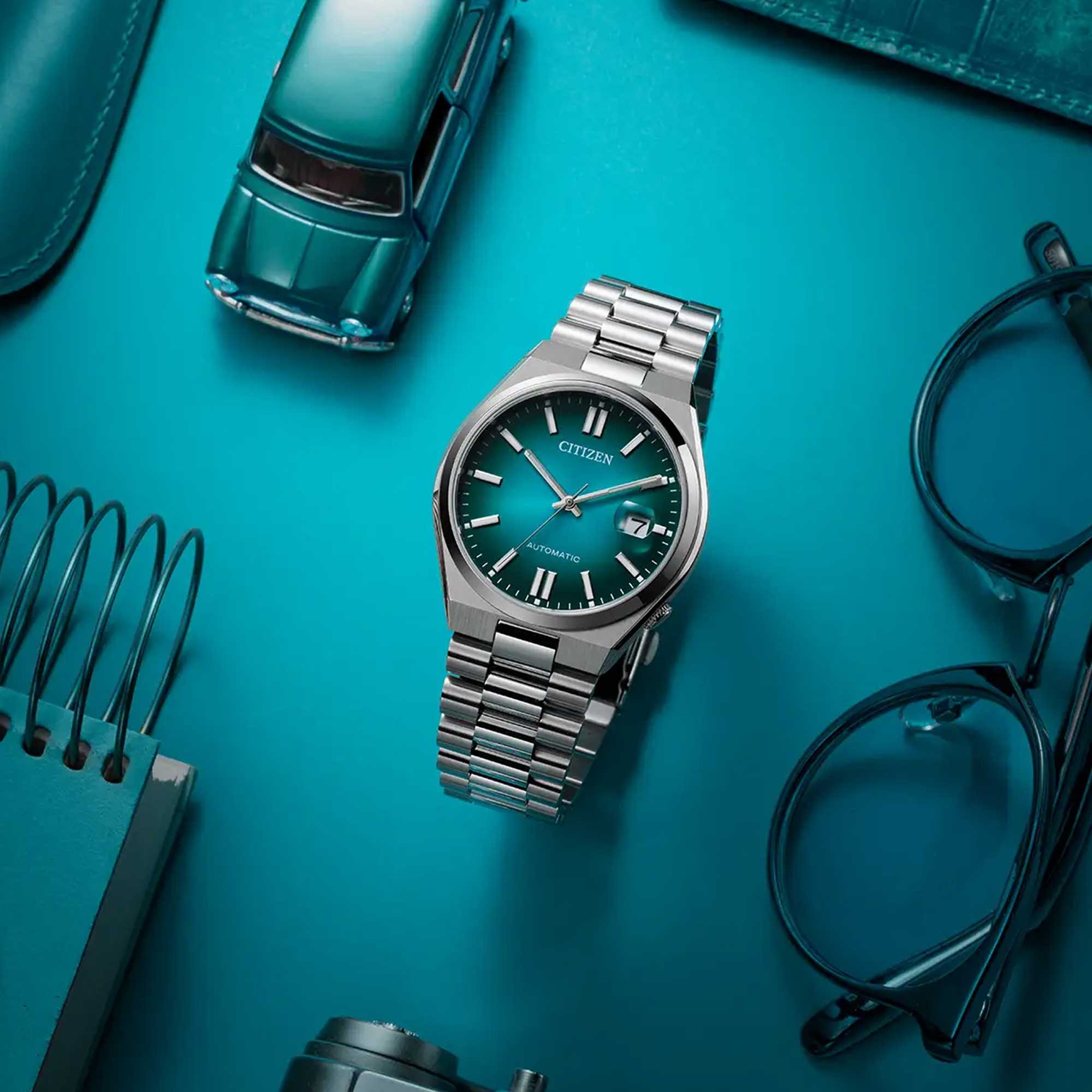 Introducing a sleek new timepiece that brings ultramodern sports styling right to your wrist, meet the Tsuyosa Automatic. Delivered in a versatile 40mm case, the sophisticated design of the watch makes a strong impression via its stainless steel case and a seamlessly integrated, matching bracelet. Underneath an anti-reflective sapphire crystal, the sporty timepiece makes use of a gradient effect blue sunray dial, with a 3 o’clock date window and contrasting silver-tone details adding to its classic aesthetic. Powered by an automatic movement and offering up to 50 metres of water resistance, the refined timepiece is a serious, daily wearing choice ready for work, play, and everything in between.