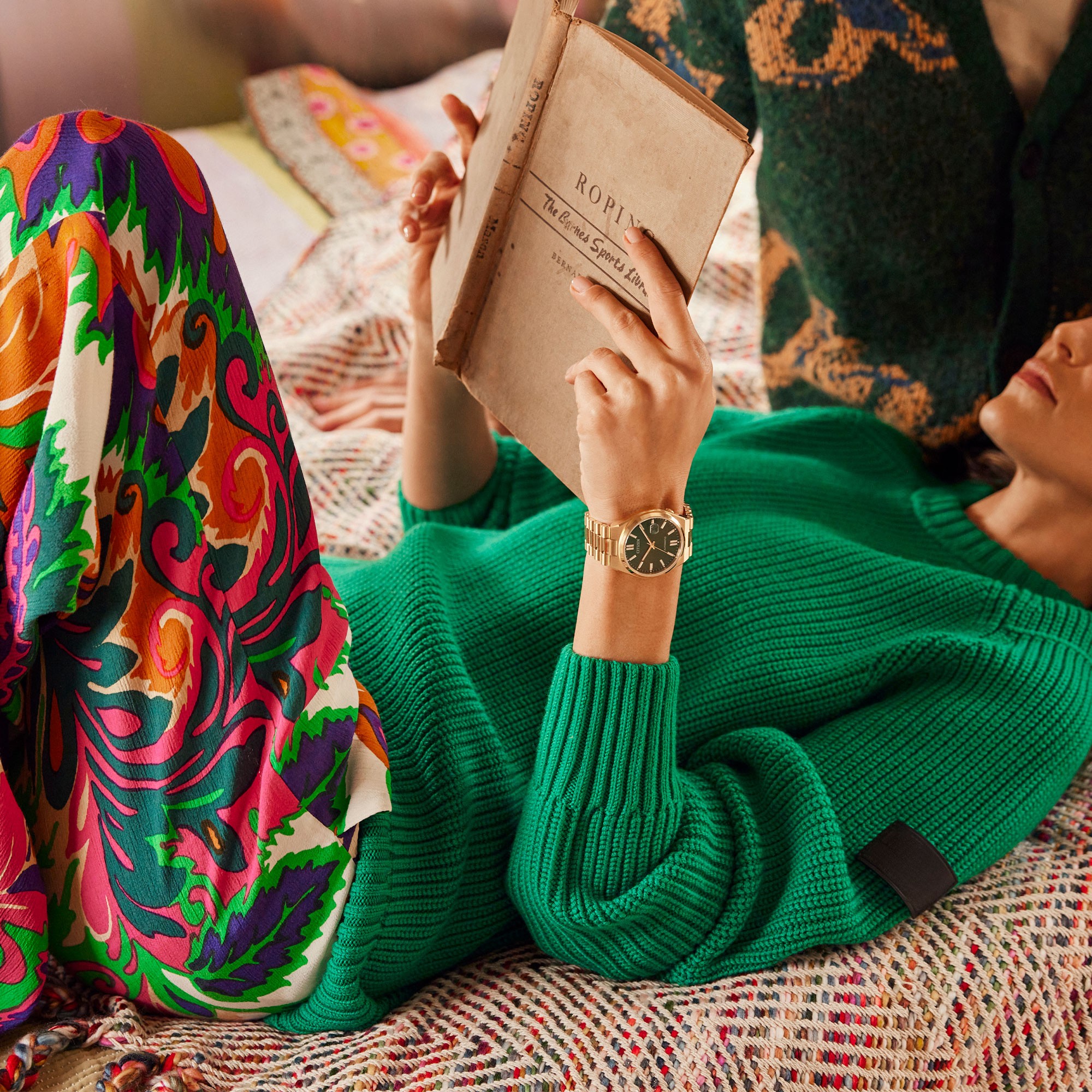 The watch is water-resistant up to 50 metres, making it suitable for short periods of recreational swimming, though it is not advised for diving or high-impact water sports. The metallic bracelet, paired with a folding clasp, offers both security and comfort, making it an ideal choice for daily wear.