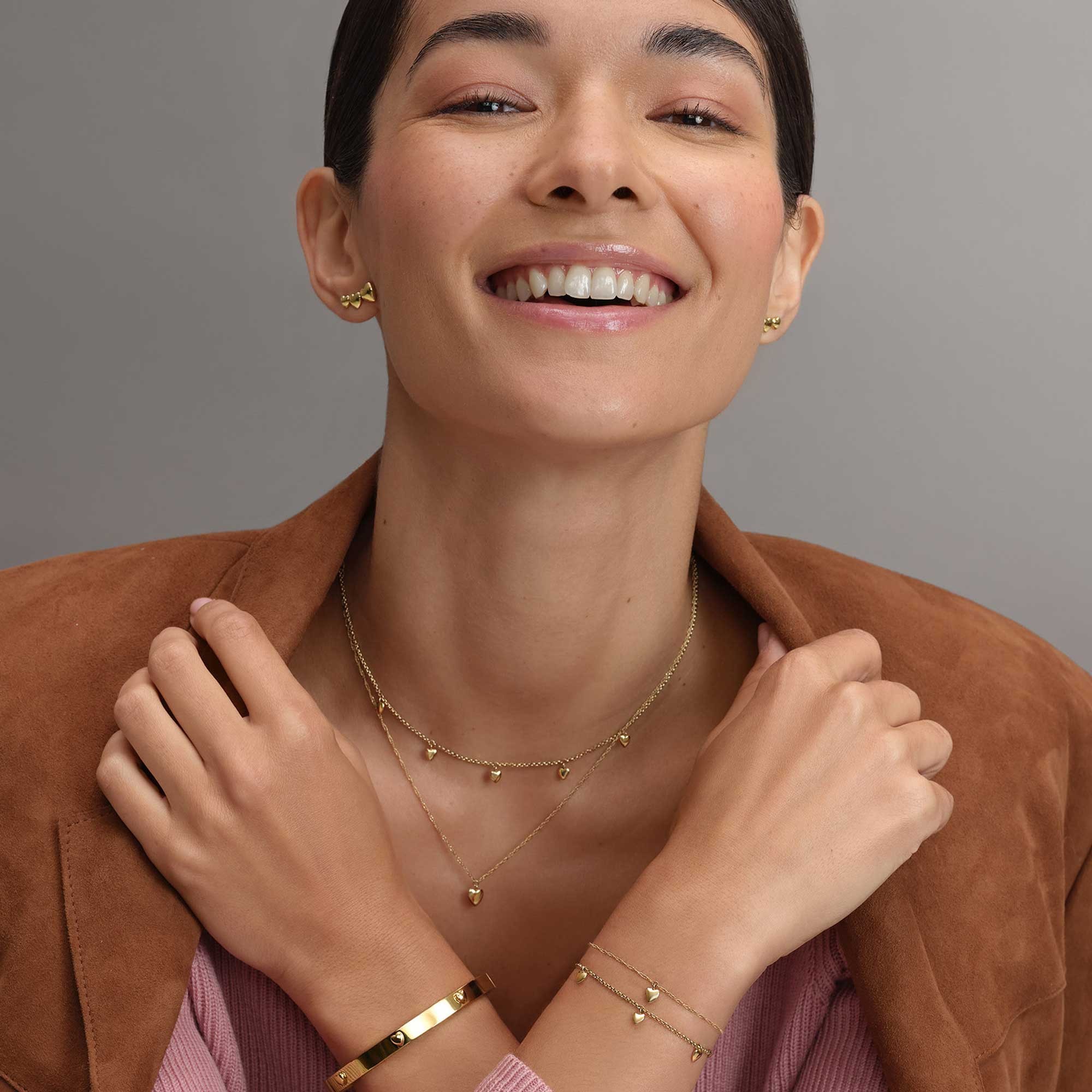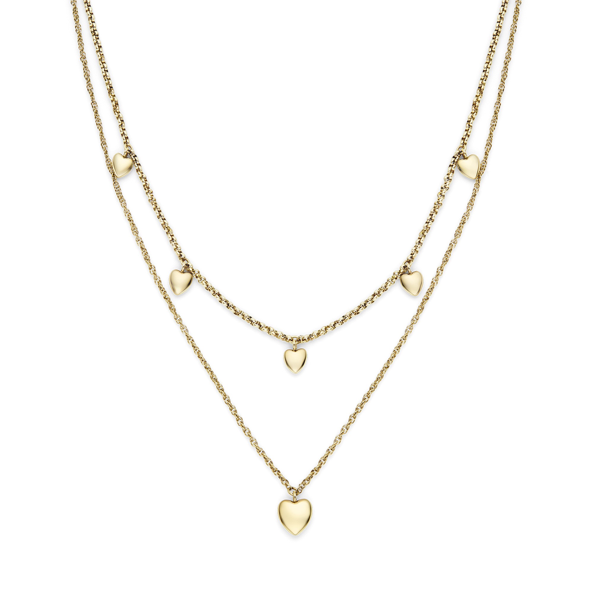 Classic Mini Heart Gold Plated Double Chain Necklace 24100457