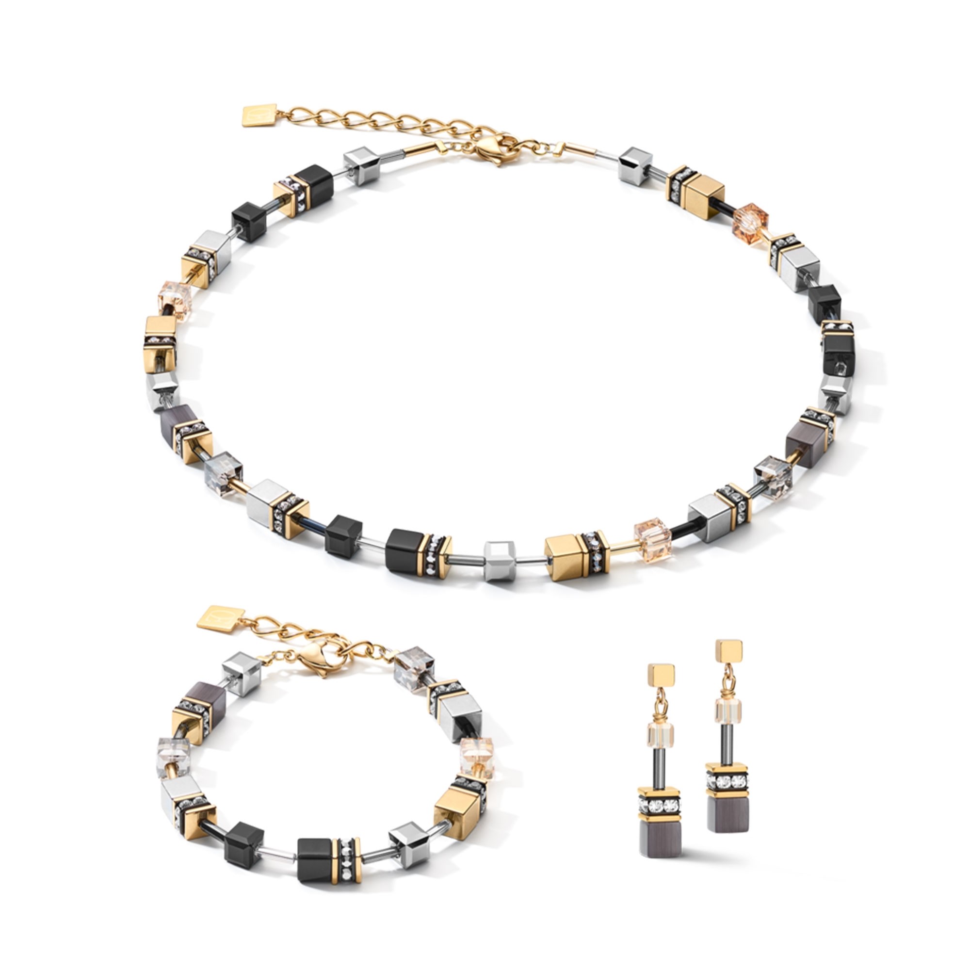 These glamorous Coeur de Lion Gold Plated Brown Grey Black Drop Earrings 2839/21-1216 will elevate any jewellery collection. The gold-plated stainless-steel earrings are crafted in a 2.4 cm drop design and are embellished with faceted grey-toned glass and crystals. Style these earrings with the matching pieces for a dramatic look.