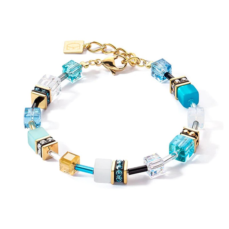 Featuring the renowned Coeur De Lion yellow gold and blue Geocubes, this bracelet exudes an aura of refined luxury. The vibrant blue stones add a pop of colour and a touch of playfulness, while the yellow gold tone accents lend a classic and sophisticated appeal. Together, they create a mesmerising combination that is both eye-catching and unique.