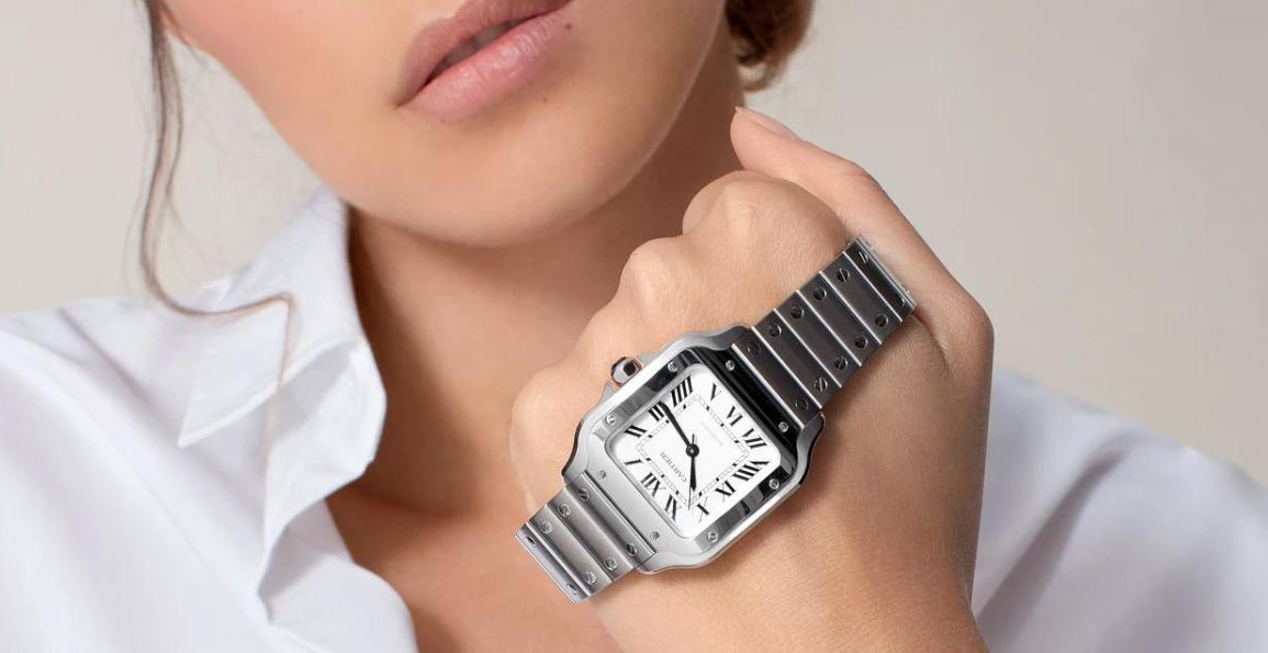 Created in 1904 for aviator Alberto Santos-Dumont, the Cartier Santos is one of the first wristwatches designed for men. Its square case and exposed screws were revolutionary at the time, blending form and function. The Santos allowed pilots to easily check the time while flying, a practical advantage over pocket watches.
