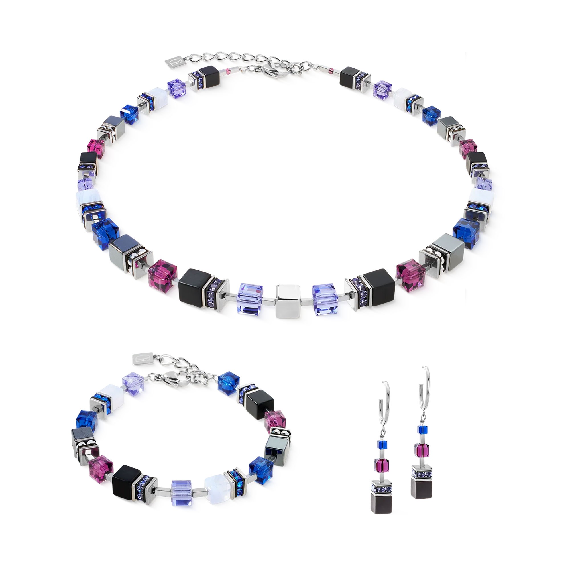 The GeoCUBE® Blue Moon hoop earrings set striking accents with geometric clarity. A black onyx cube forms the base of the pendant, complemented by cube elements in bright pink and vibrant blue. Silver-coloured stainless steel gives the design a modern frame. Expressive and versatile - perfect as a statement, worn solo or as a set.