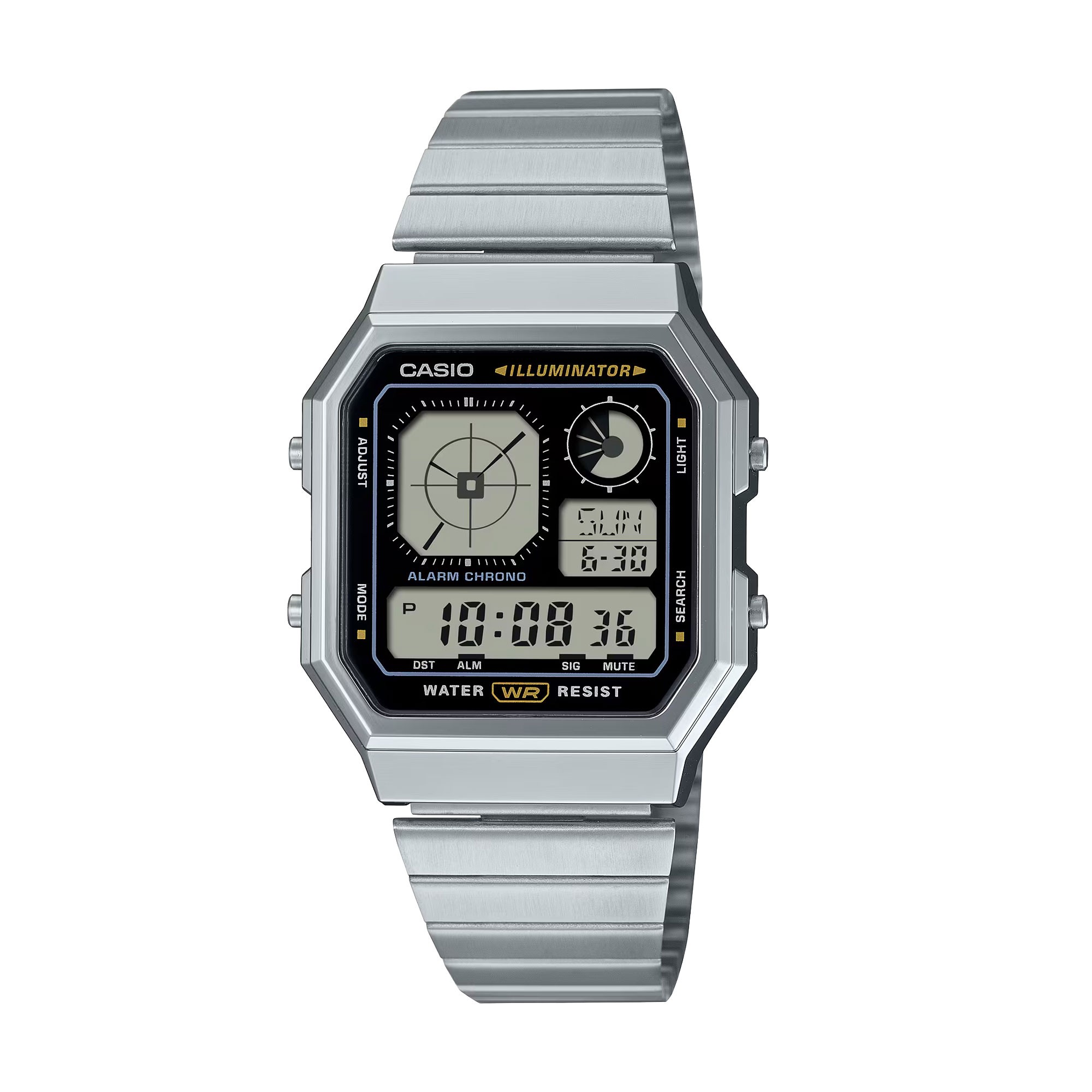 The A130WE-1AEF sports a metal bracelet strap that not only complements its silver case but also features a practical folding clasp for secure fitting. This watch is packaged in official presentation packaging, making it a great gift option.