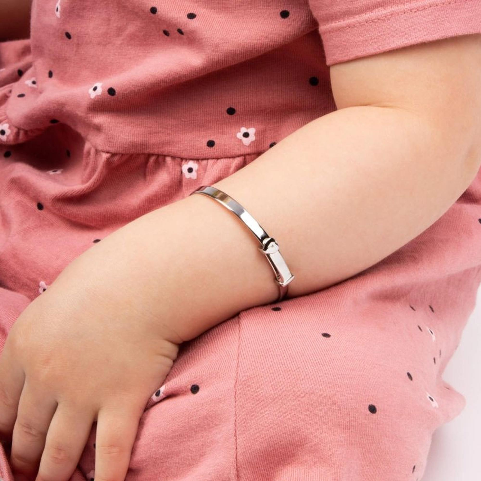 Created in London 2000, D for Diamond children's jewellery range for little boys and girls, is the ideal keepsake jewellery gift for your little one. Most items in the range feature the brand's signature genuine diamond setting which gives it that extra special touch. This gorgeous adjustable D for Diamond baby bangle with a diamond set heart is ideal for a 1st birthday or Christening gift. Beautifully designed in sterling silver, the heart decoration is subtly decorated with a tiny little genuine diamond. The bangle is adjustable to fit the child's wrist and grow as they do.