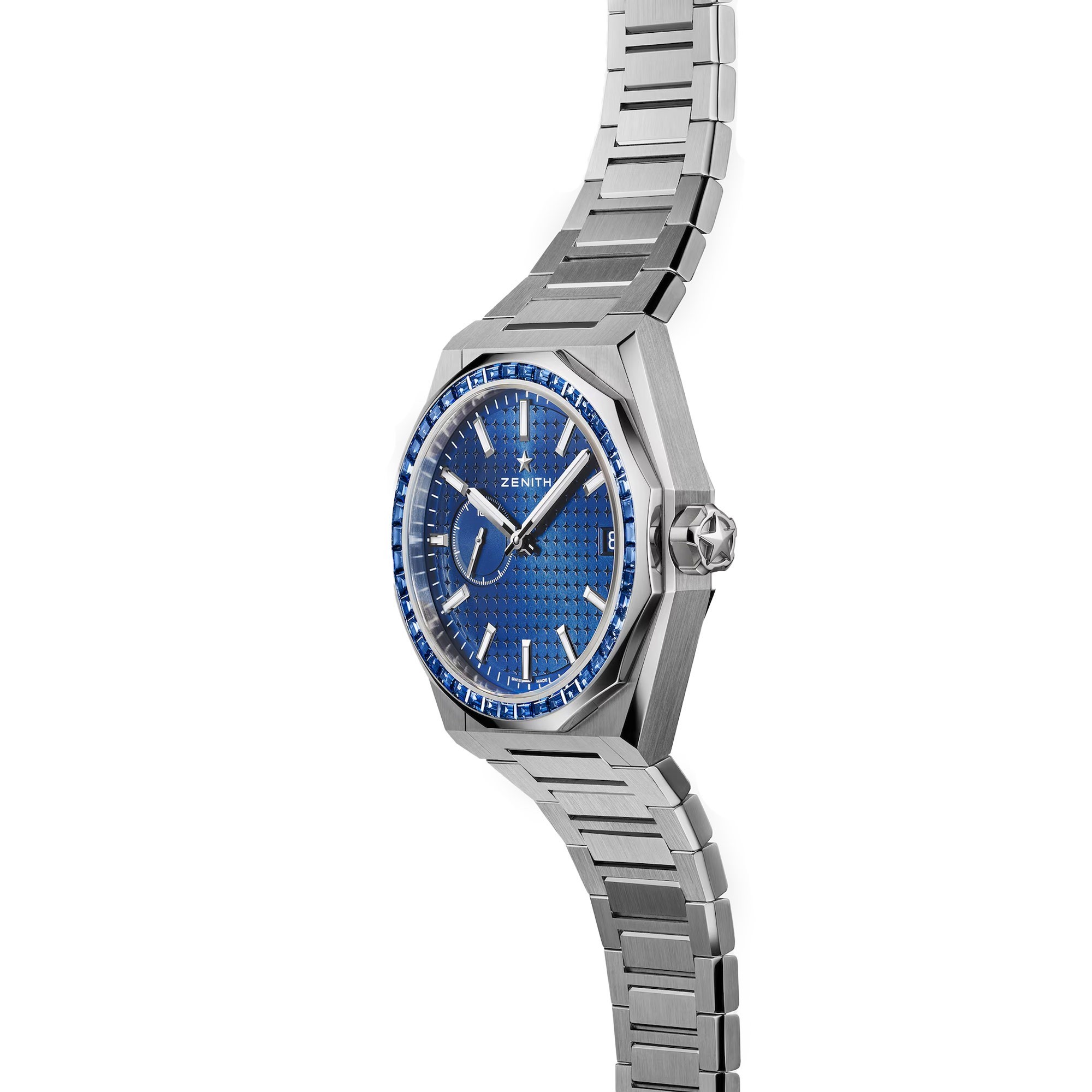 Presenting the Ex-Display Zenith Defy Skyline Sapphire Automatic 41mm Men's Watch (Model: 16.9300.3620/51.I001), a remarkable piece from the prestigious Zenith collection. Designed for the modern man, this watch showcases a striking blue dial, adorned with baton markers for a sleek, sophisticated look.