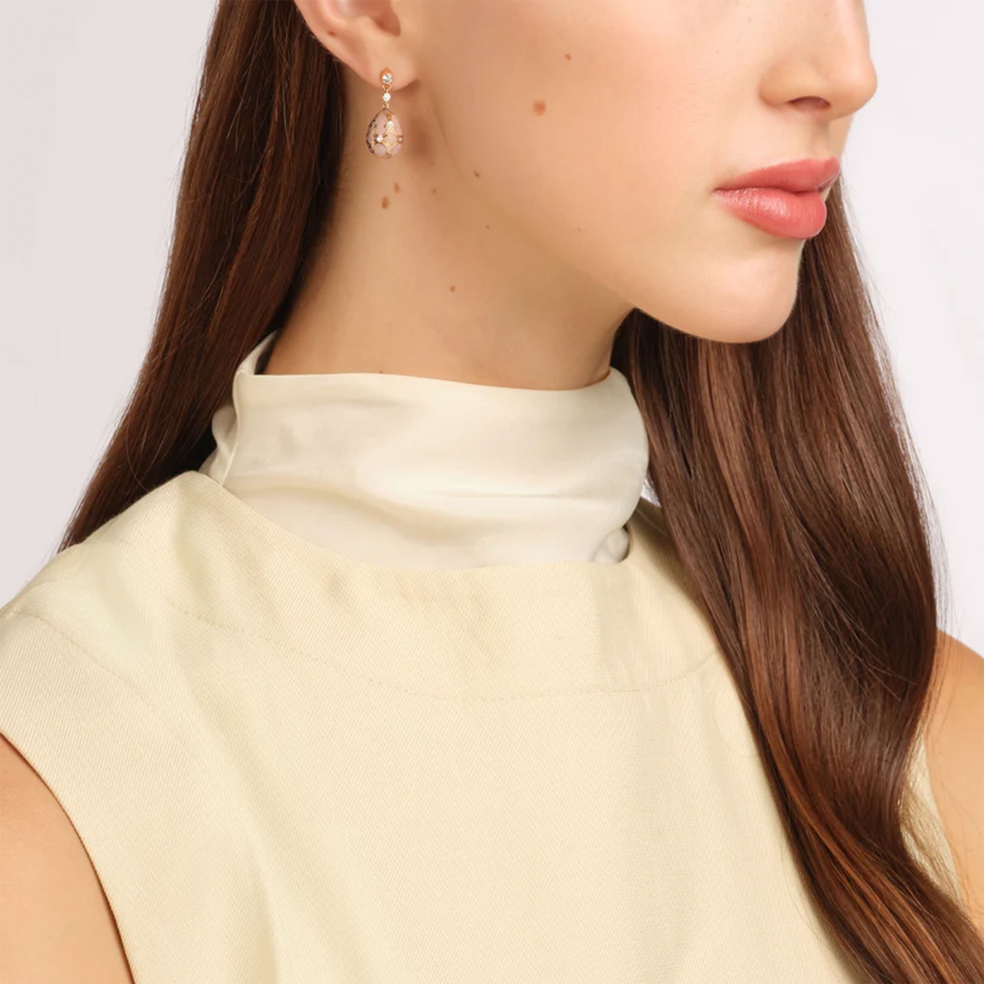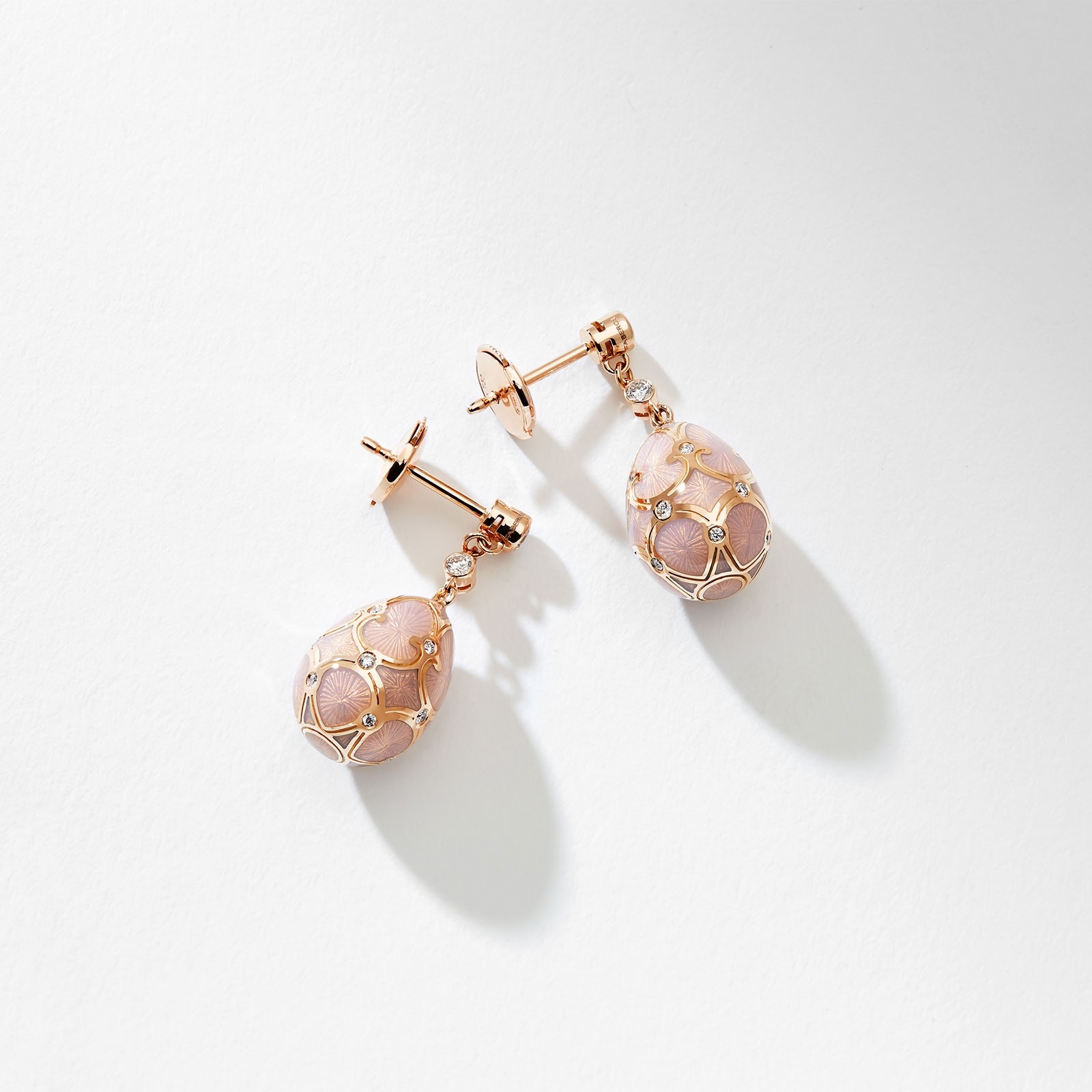 Fabergé Heritage Rose Gold Pink Guilloché Enamel Egg Drop Earrings 387EA1446