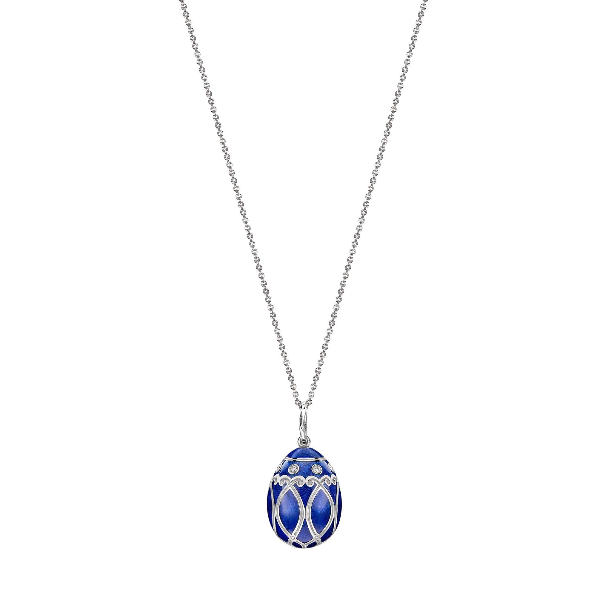 Fabergé Heritage Yelagin White Gold Diamond & Royal Blue Guilloché Enamel Egg Pendant 213FP1350/14