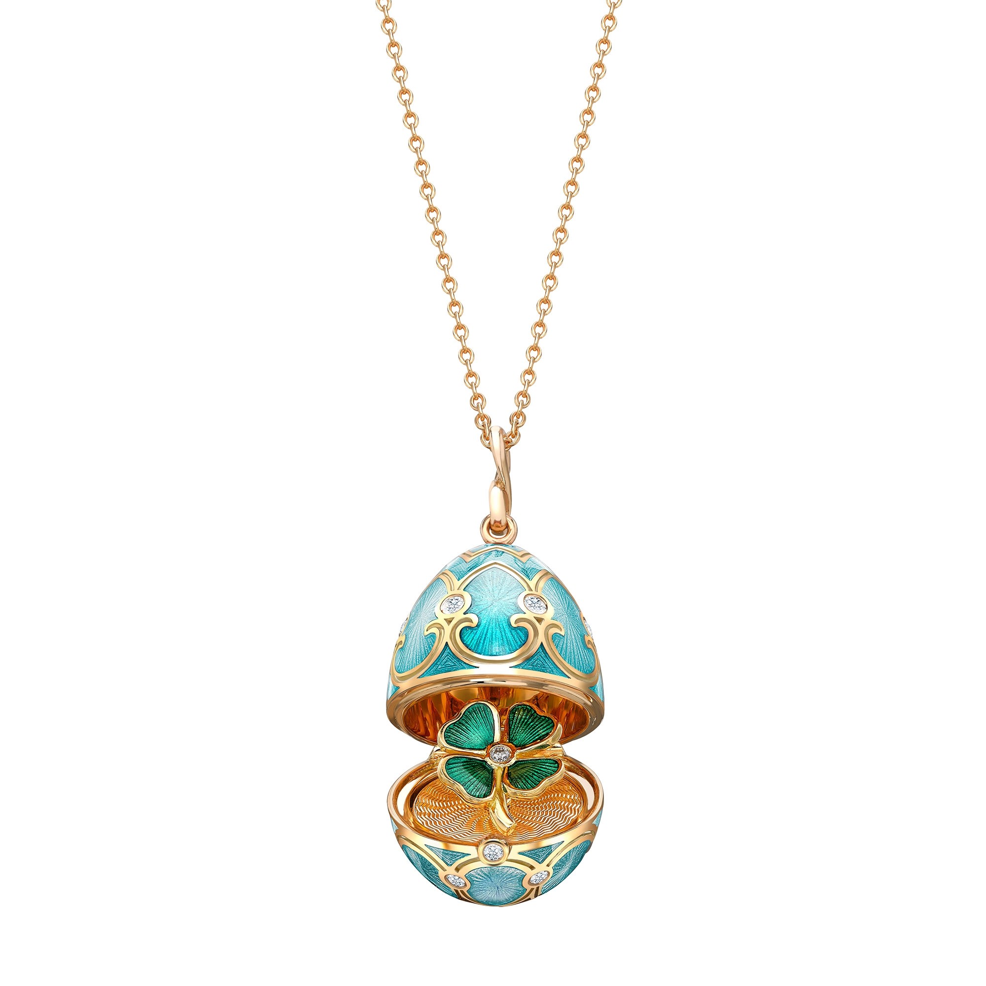 Fabergé Heritage Yellow Gold Diamond & Turquoise Guilloché Enamel Clover Surprise Locket 1151FP1907/93