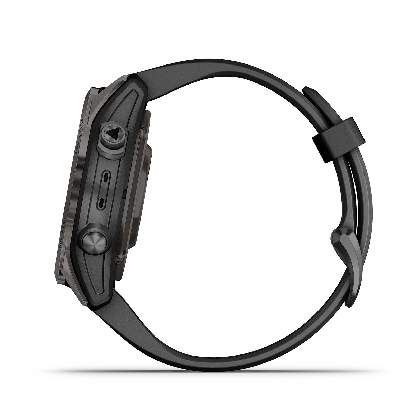 Introducing the Garmin EPIX Pro Gen 2 Sapphire Edition 42mm Men's Watch 010-02802-15, a cutting-edge timepiece designed to meet the demands of outdoor adventurers and professionals alike. The 42mm case exudes toughness and reliability, with its reinforced construction and robust materials. Featuring a vibrant 1.4-inch sunlight-readable colour display, this watch offers exceptional visibility and clarity in any lighting condition. It includes multi-GNSS support, providing access to multiple satellite systems for precise positioning. Additionally, the EPIX Pro Gen 2 Sapphire Edition offers an altimeter, barometer, and compass, allowing you to monitor elevation, weather conditions, and direction, respectively. There are also smart watch functionalities which allows you to receive notifications from your smartphone, track your daily activity, and monitor your heart rate. The Garmin EPIX Pro Gen 2 Sapphire Edition is complemented by a comfortable silicone strap, offering a secure fit during your most rigorous activities. The QuickFitâ„¢ band system allows for easy interchangeability, enabling you to personalize your watch to suit your style and preferences.