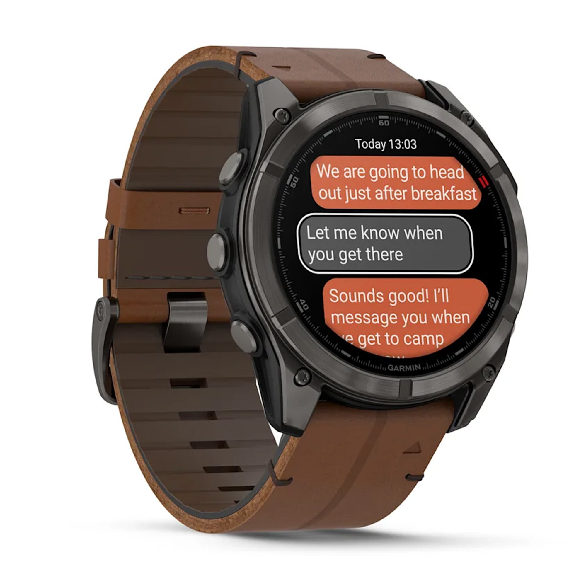 Going for a run? Taking a swim? Leave your phone behind, and use your watch’s LTE connection1 to exchange messages and make voice calls — plus let friends follow along with LiveTrack™ location sharing and location check-ins with the on-device Garmin messenger™ app. Even get access to weather conditions and forecasts.