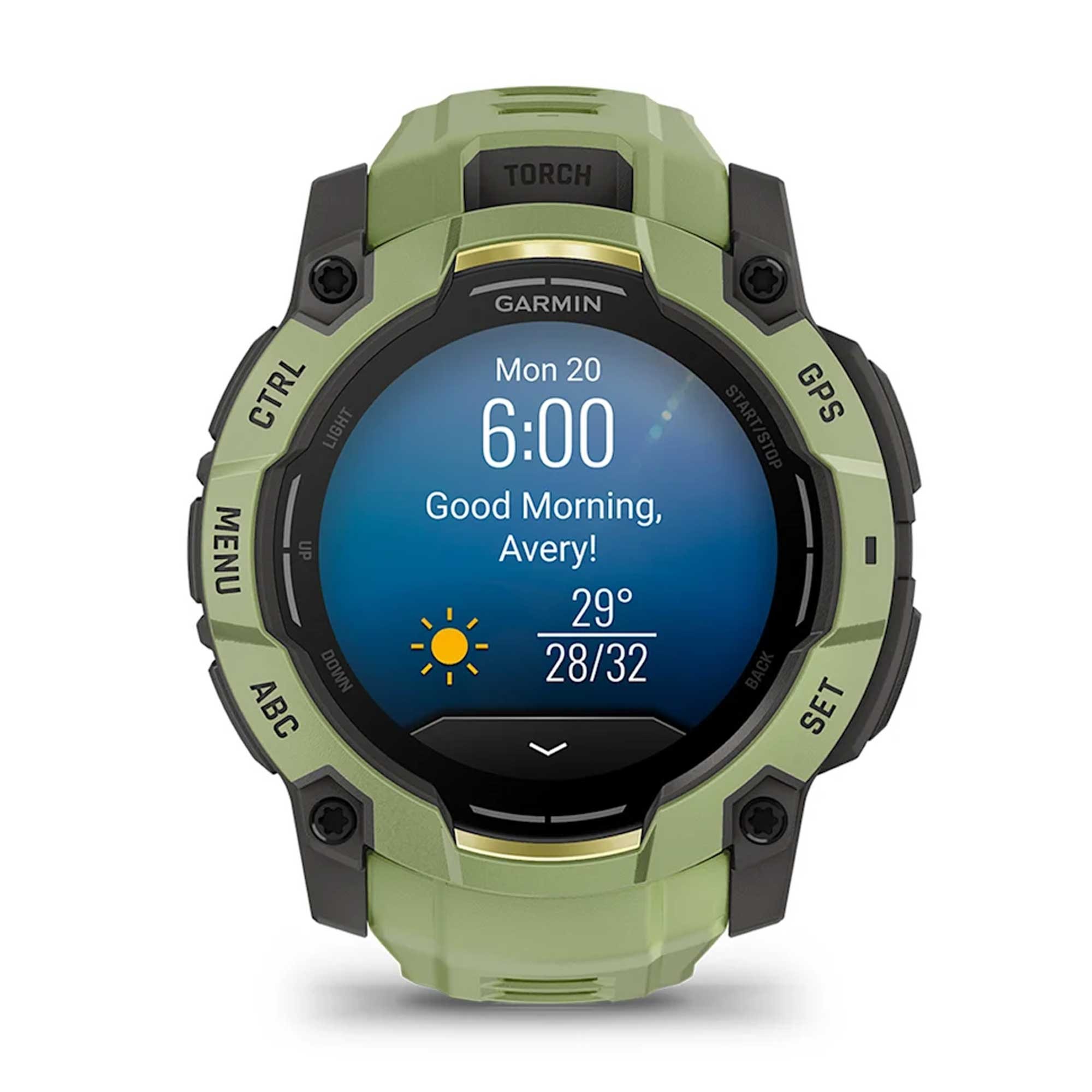 Garmin Limited Edition Instinct® 3 AMOLED 50mm Smart Watch 010-03020-02 is the rugged GPS smartwatch that’s designed to be worn through anything. Follow yours, wherever the adventure leads. Make a bold statement with a vibrant 1.3-inch AMOLED display set in a 50 mm round case. A metal‑reinforced bezel, scratch‑resistant screen and 100 metres water resistance pair with a tough green polymer resin case, a durable synthetic strap and a secure pin buckle. See and be seen with a built‑in flashlight offering variable intensities and an alternate red light.