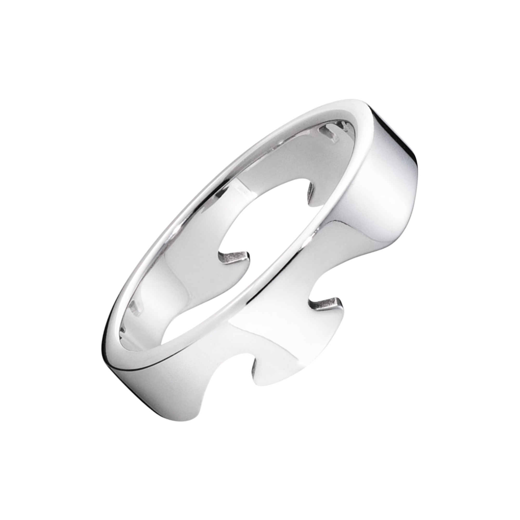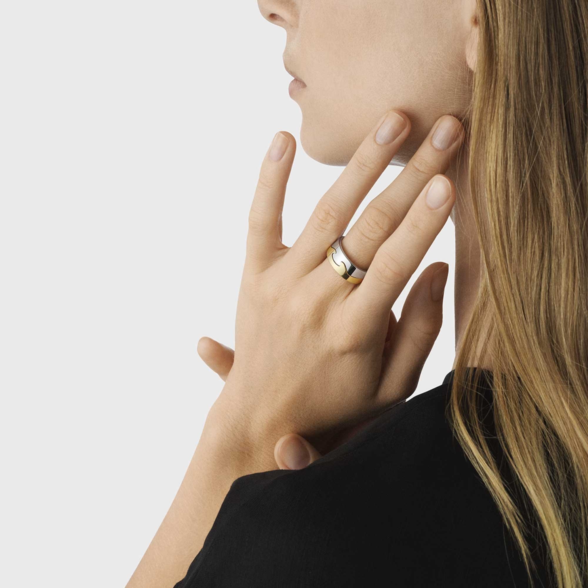 The iconic Fusion collection was first envisioned by Danish designer Nina Koppel, who used organic, interlocking shapes to form bold pieces with distinct graphic appeal. The 18 karat, white gold End Ring makes a striking standalone piece or can be slotted together with other pieces from the collection to form an endless array of elegant combinations.