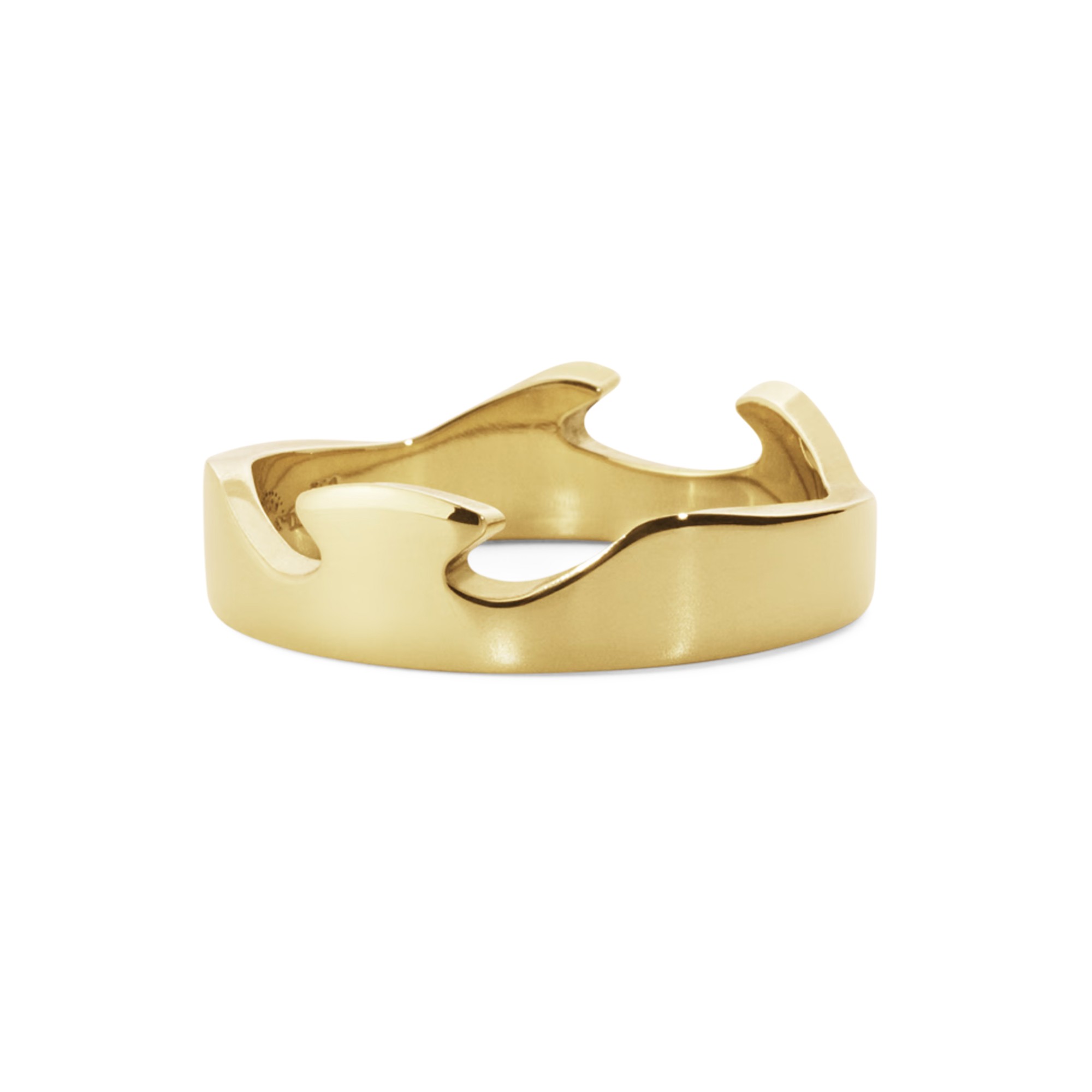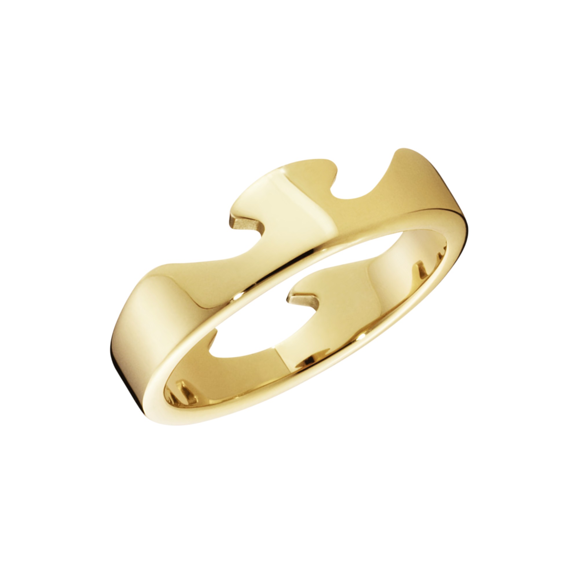 The iconic Fusion collection was first envisioned by Danish designer Nina Koppel, who used organic, interlocking shapes to form bold pieces with distinct graphic appeal. The 18 karat, yellow gold End Ring makes a striking standalone piece or can be slotted together with other pieces from the collection to form an endless array of elegant combinations.