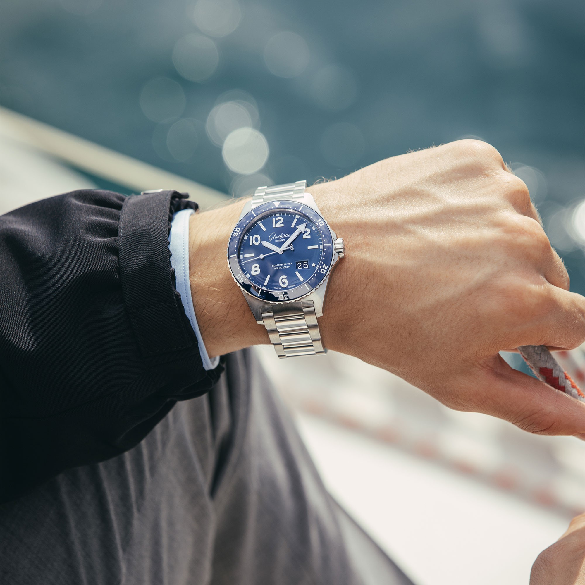 Glashütte Original represents German watchmaking art starting from its establishing in 1845. The deep sense of boldness and beauty combined with reliable precision and lasting values of the brand has made it one of the most reputable watch company of the world. Moreover, they has founded an own school of watchmaking to pass on their expertise.Glashütte Original SeaQ Panorama Date 43.20mm watch. Stainless steel case. Automatic movement. Blue dial. Stainless steel bracelet. Made in Germany. Watch comes in original packaging, with set of documents and 2 years warranty.