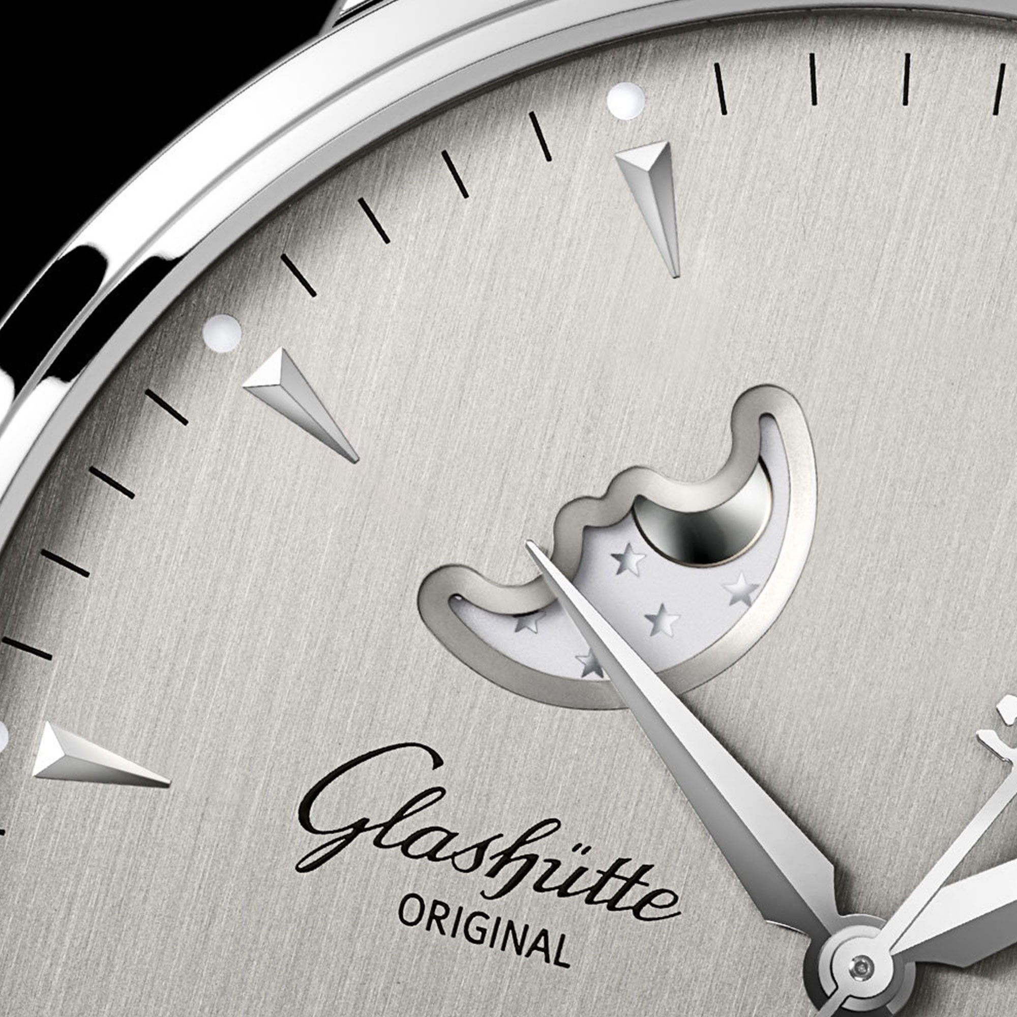 Glashütte Original represents German watchmaking art starting from its establishing in 1845. The deep sense of boldness and beauty combined with reliable precision and lasting values of the brand has made it one of the most reputable watch company of the world. Moreover, they has founded an own school of watchmaking to pass on their expertise.Senator Excellence Panorama Date Moon Phase is Glashütte Original extends Senator Excellence line.Glashütte Original Senator Excellence Panorama Date Moon Phase 42 mm watch. Galvanized silver grey dial with vertically brushed finish, hour markers with luminous spots, white gold appliques, hands rhodium-plated. Automatic movement. Stainless steel bracelet. Made in Germany. Watch comes in original packaging, with set of documents and 2 years warranty.