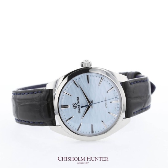 The Grand Seiko Elegance Collection Omiwatari Mens Watch SBGY007, a new Spring Drive timepiece, is available at Chisholm Hunter today. The hand-wound “Omiwatari”, which means ‘pathway of the Gods’, is inspired by Lake Suwa. The inspiration is evident with the colour and texture of the timepiece’s face being reminiscent of snow and ice. This Grand Seiko is powered by the Spring Drive Calibre 9R31 and is finished with intricate jewels, screws and gears which make the piece a unique joy to own. Presented on a crocodile leather strap the luxurious SBGY007 is an essential to any collection.