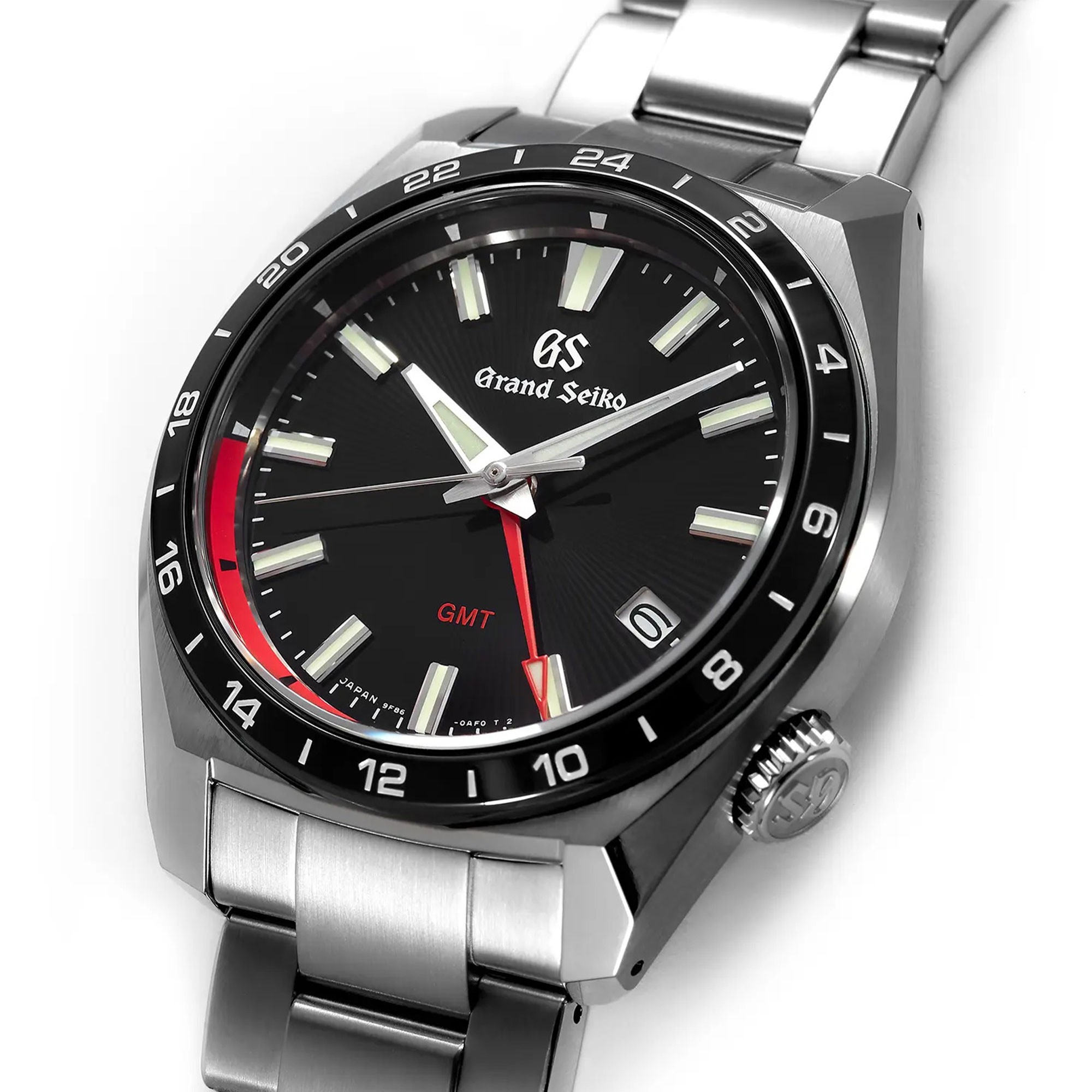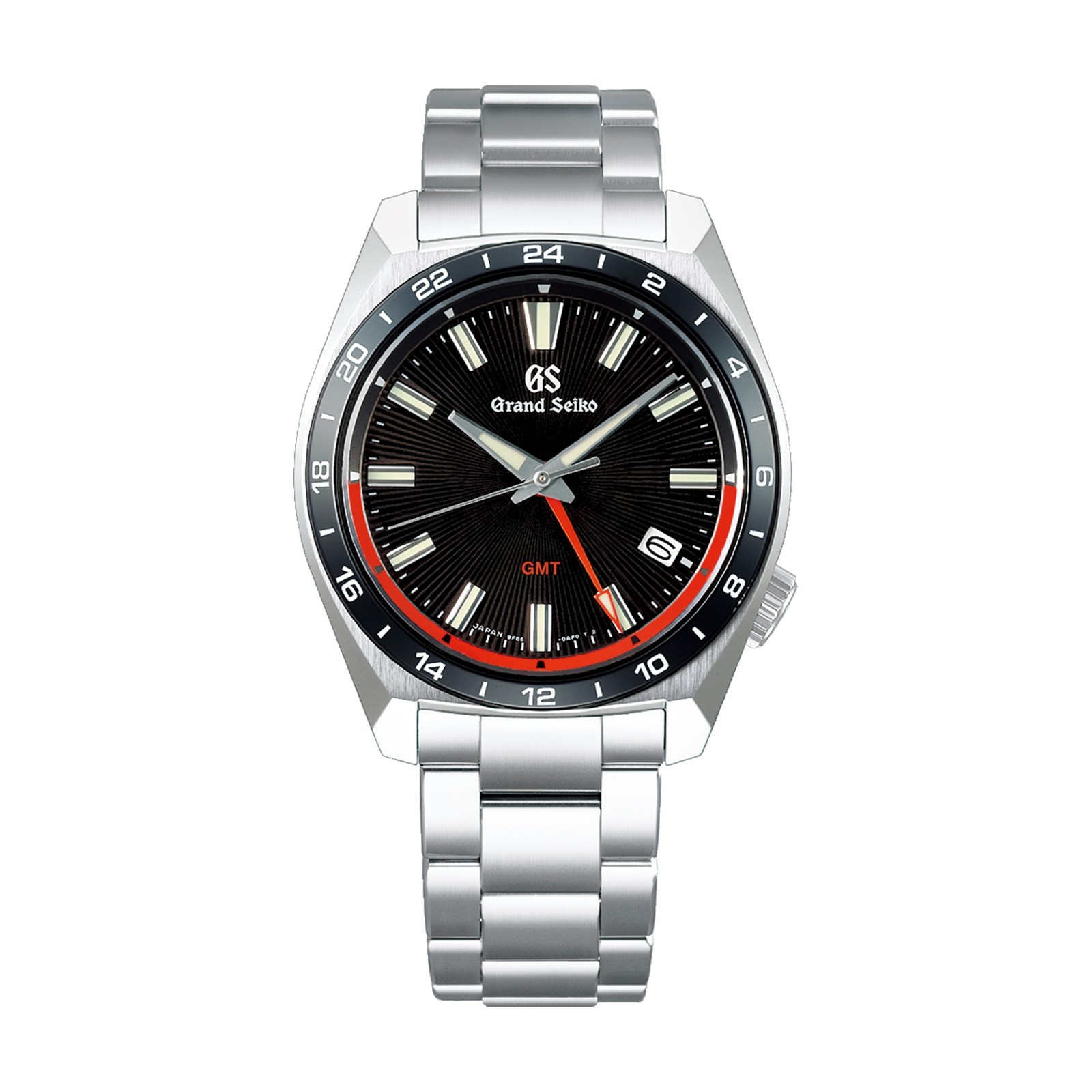 This quartz GMT creation combines form and function deliver the precision, durability and ease of use that are the hallmarks of Grand Seiko. The muscular steel case has a ceramic bezel whose hardness protects it from scratches and ensures its lasting beauty. The orange of the GMT hand is mirrored in the dial ring to make it easy to read the 24 hour hand at a glance and the GMT hand is illuminated by a Lumibrite that emits a different color than that of the hour and minute hands and indexes, ensuring high legibility even in the dark. The twin pulse quartz caliber 9F86 delivers the high torque needed to keep the wide hands moving precisely and offers the wearer the convenience of being able to change the time zone without stopping the seconds hand.