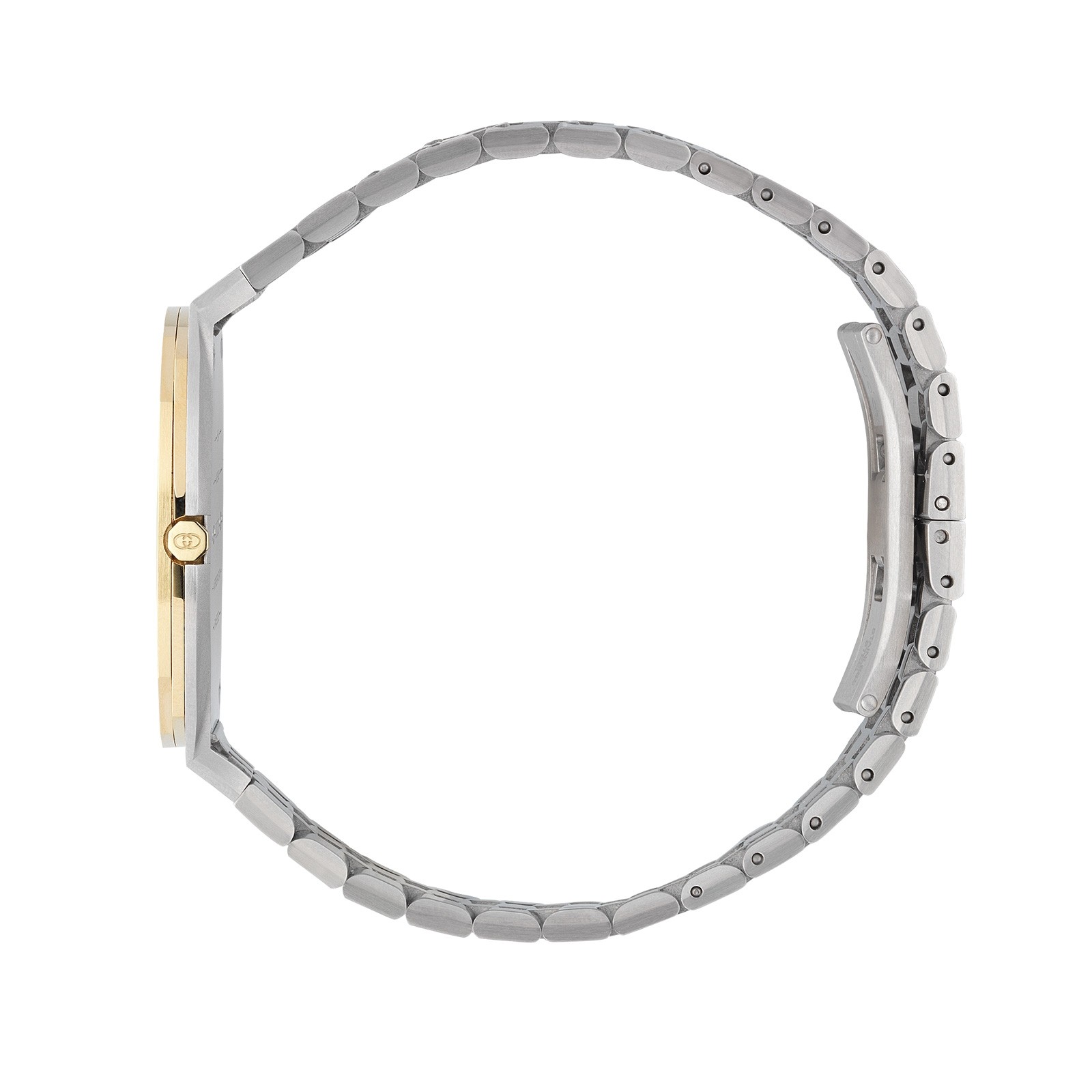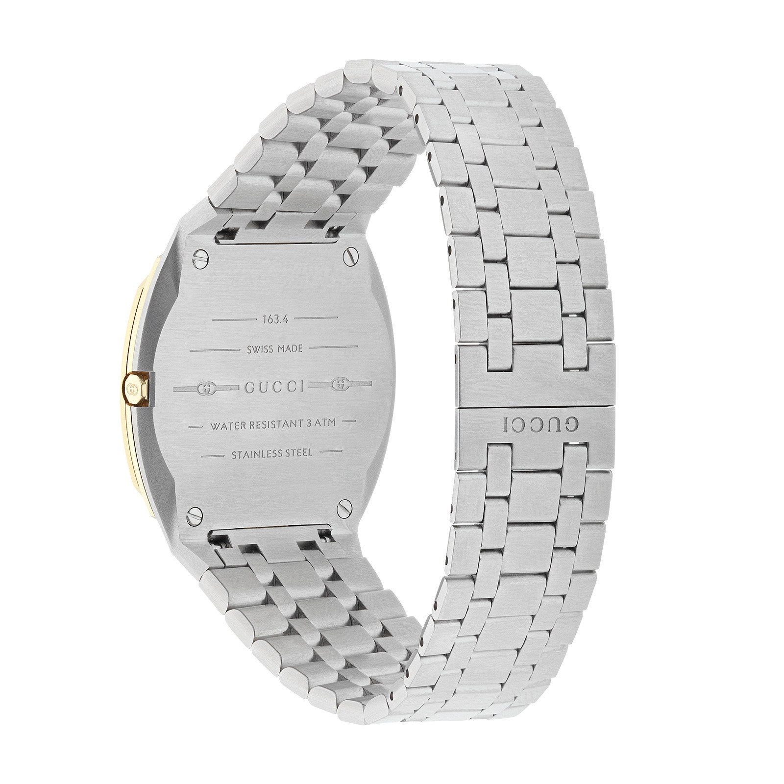 A sporty, contemporary addition to your collection, the GUCCI 25H 38mm unisex Watch YA163405 is an elegant choice to take you from desk to dinner. Brushed gold-plated steel forms the 38mm case which holds the engraved gold dial with baton indexes and quartz movement. This timepiece is presented on a sleek steel bracelet.