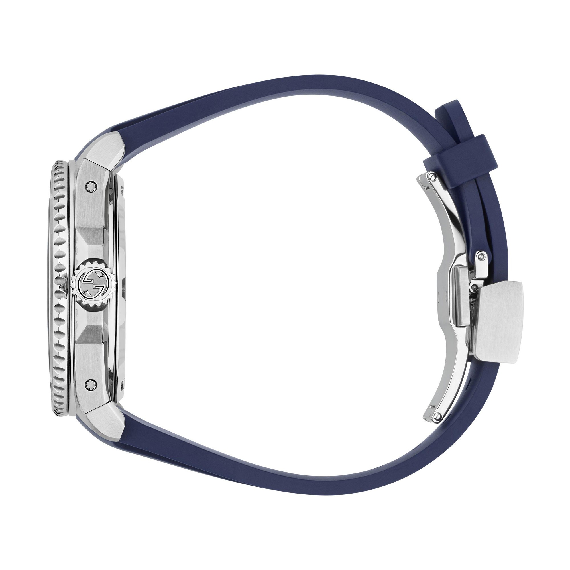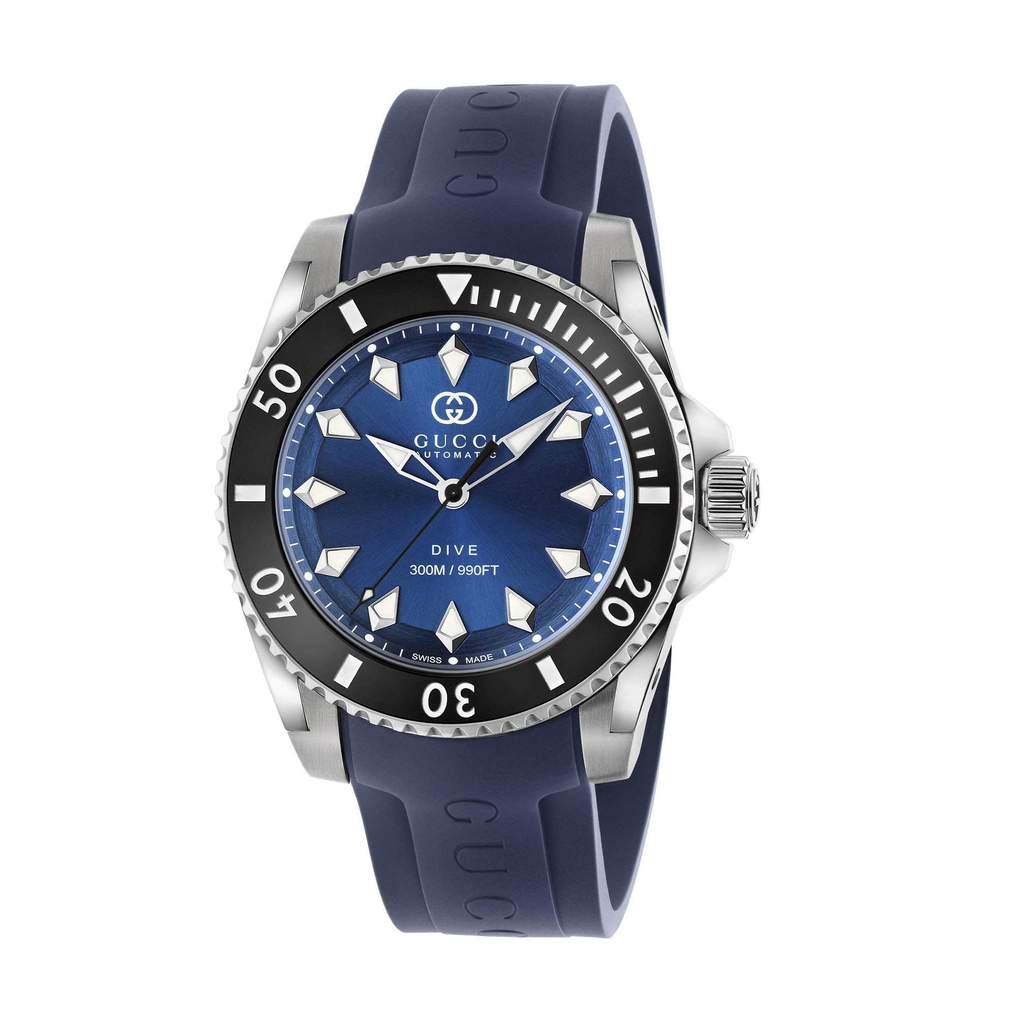 Discover the epitome of sophistication with the Gucci Dive Mens Watch YA136359, a distinguished addition to the renowned Gucci Dive Collection. This exquisite timepiece redefines luxury, intertwining contemporary features with timeless elegance. The watch boasts a robust stainless steel case for unparalleled durability, encasing a captivating blue dial adorned with the iconic Interlocking G logo, a symbol of unparalleled craftsmanship and heritage.