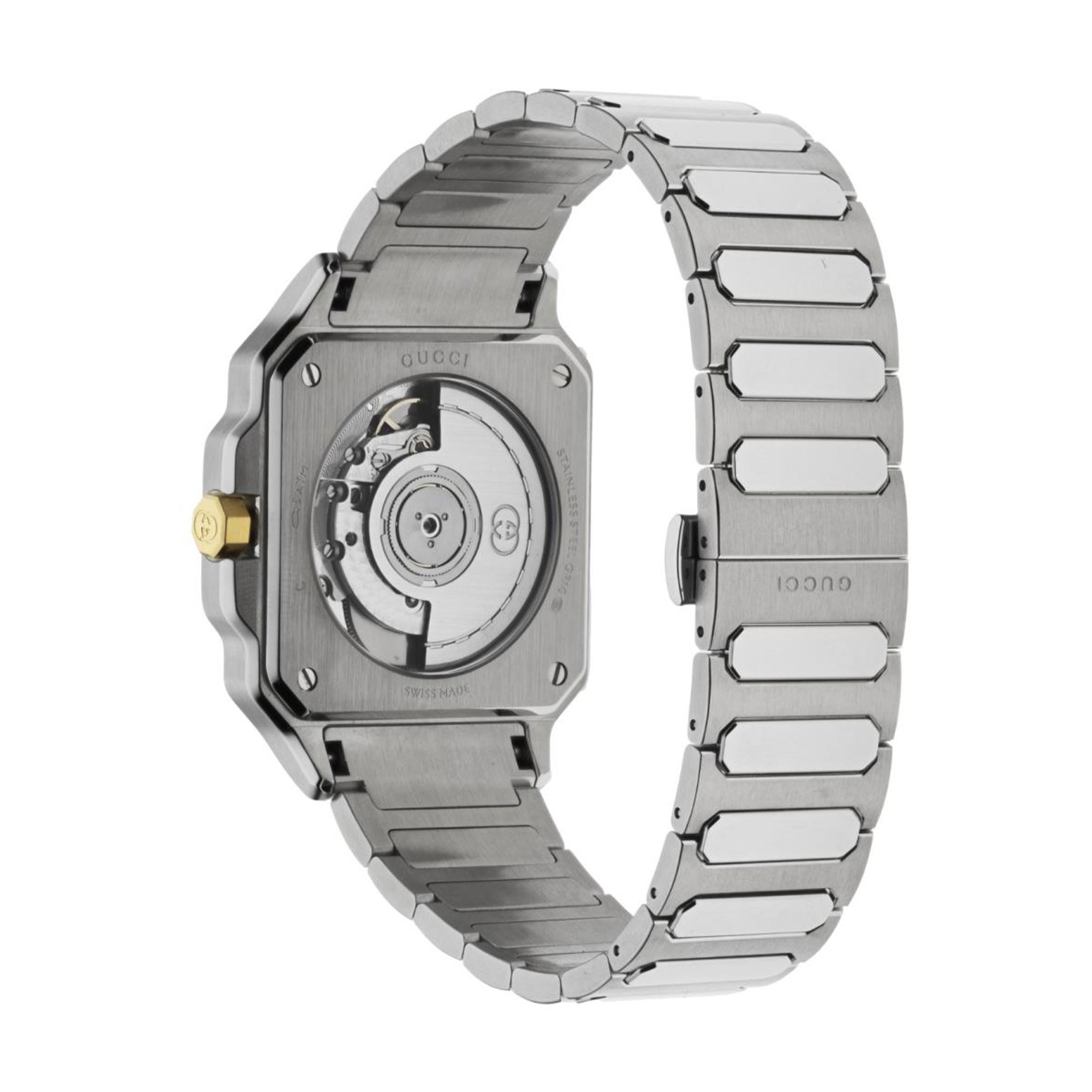 With a water resistance of up to 50 metres, the Gucci G-Flat watch is suitable for various activities, from business meetings to casual outings. It is packaged in luxurious Gucci presentation packaging, making it an excellent gift choice.