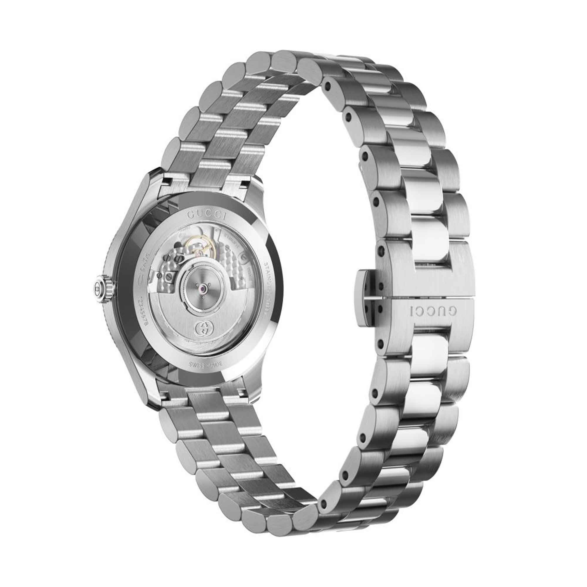 Discover the epitome of luxury, sophistication and style with the Gucci G-Timeless 40mm Mens Watch YA126388, a sleek and modern timepiece from Gucci’s esteemed G-Timeless collection. Driven by an automatic movement for precision timekeeping, this stunning watch encapsulates a perfect blend of utility and style. The watch case, in robust stainless steel, offers a timeless silver aesthetic that elegantly complements any wardrobe choice. With a case width of 38mm, it offers a bold yet comfortable fit on the wrist. The face of the watch boasts a stylish, minimalist black colour, lending an air of contemporary sophistication to the overall design.